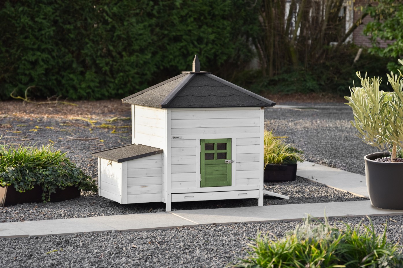 Diese Stall Ambiance Large ist eigentlich ein Hühnerstall, eignet sich jedoch sehr gut für die Unterbringung großer Kaninchen wie Flämische Riesenkaninchen und Französische Hangoor-Kaninchen. Dieser Stall wurde um eine Nistkasten erweitert. Beachten Sie jedoch, dass dieser Stall nicht mit Aluminium-Antiknabberstreifen ausgestattet ist. Sie können diese separat bestellen.
