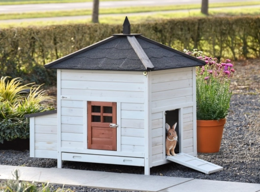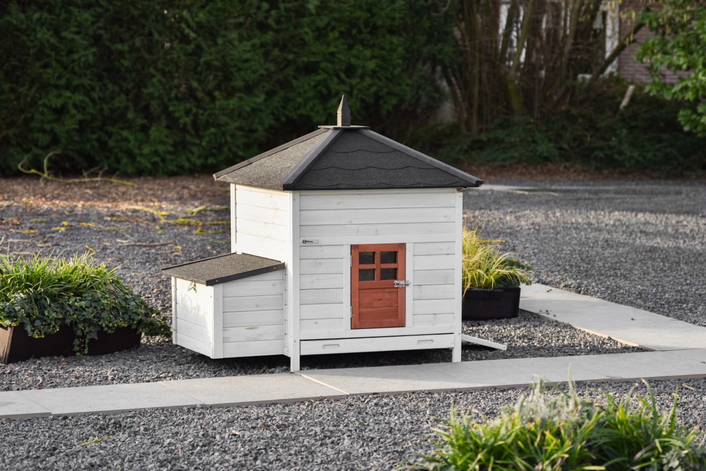 Diese Stall Ambiance Large ist eigentlich ein Hühnerstall, eignet sich jedoch sehr gut für die Unterbringung großer Kaninchen wie Flämische Riesenkaninchen und Französische Hangoor-Kaninchen. Dieser Stall wurde um eine Nistkasten erweitert. Beachten Sie jedoch, dass dieser Stall nicht mit Aluminium-Antiknabberstreifen ausgestattet ist. Sie können diese separat bestellen.