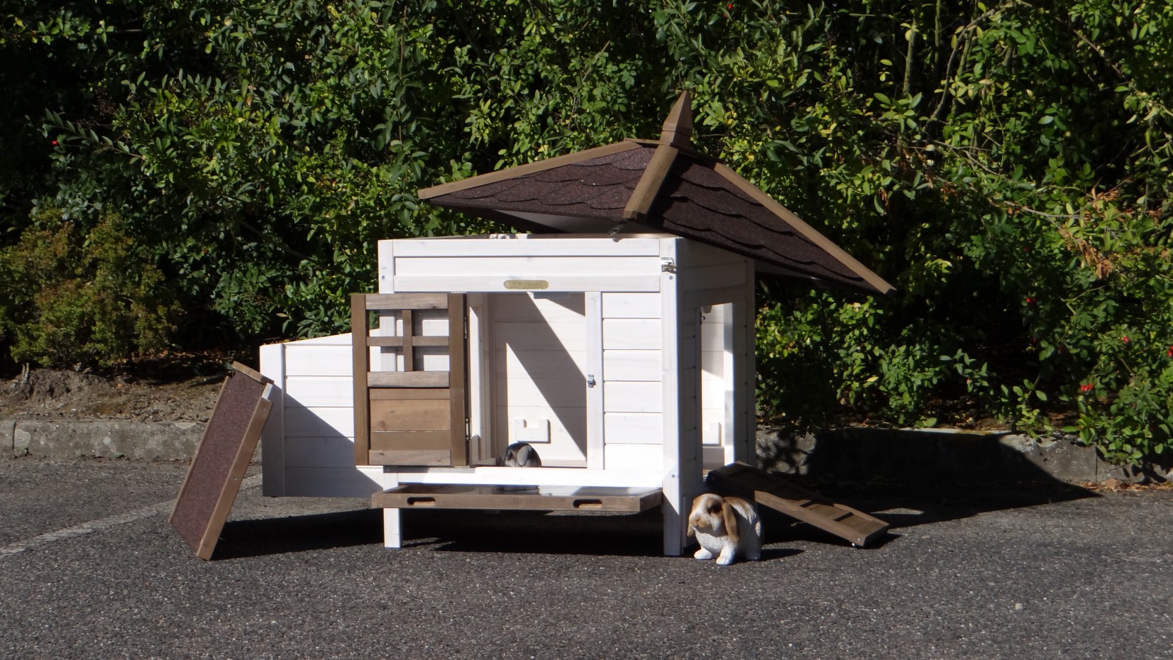 Ambiance Small ist ein tolles Kaninchenstall mit einem abnehmbaren Dach. Eigentlich als Hühnerstall gedacht, aber auch für große Kaninchen wie den Flämischen Riesen oder das Französische Hängeohrkaninchen bestens geeignet. Der Stall verfügt nicht über Aluminium-Antiknabberstreifen, die Sie jedoch separat bestellen können. Der Stall ist mit einer verzinkten Schublade ausgestattet.