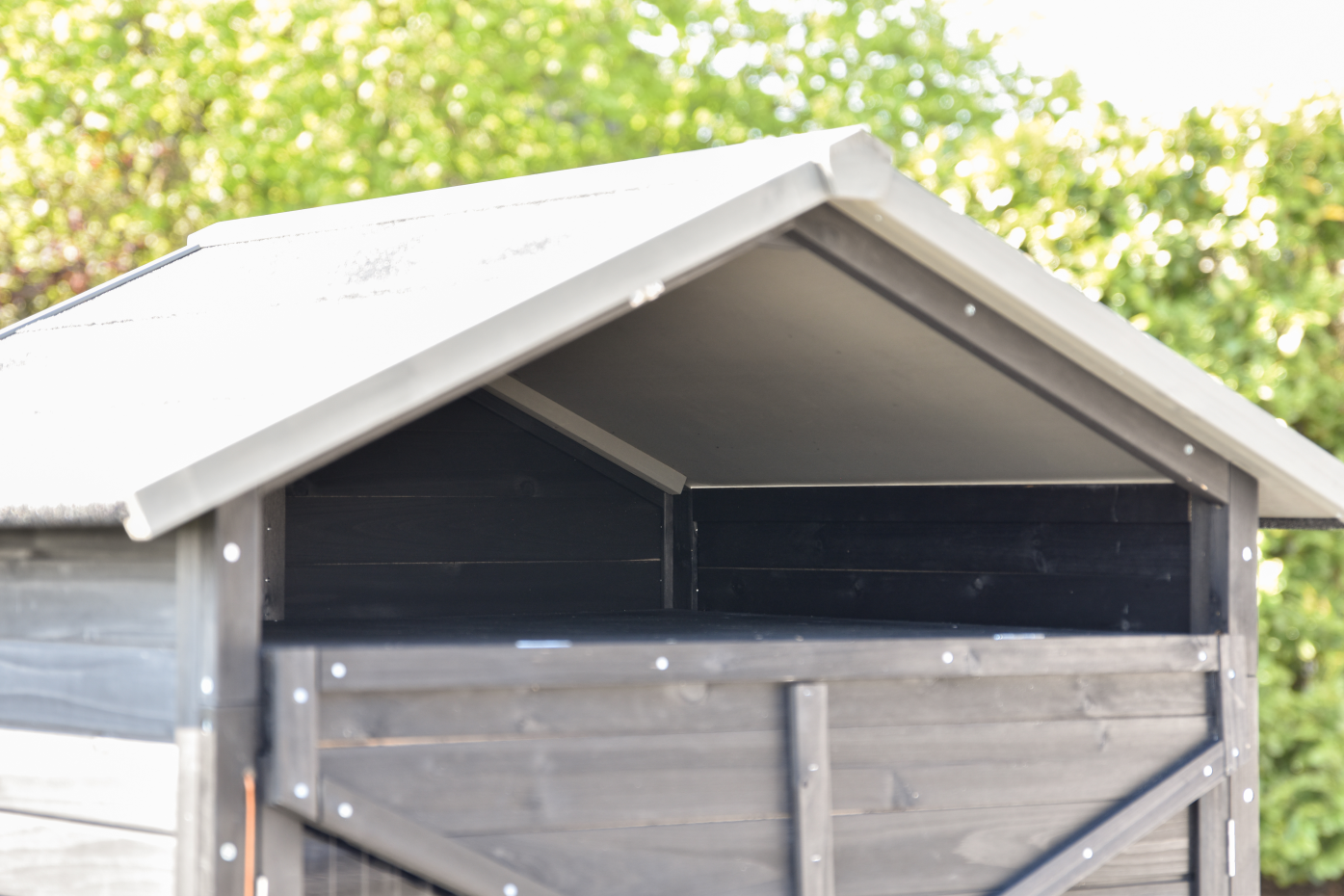 Zur Vermeidung von Rost- und Korrosionsbildung empfiehlt es sich, Schlösser und Beschläge regelmäßig mit Silikonspray oder Schlösserspray zu behandeln. Steht die Tierunterkunft nicht an einem geschützten Ort, empfehlen wir Ihnen, die Tierunterkunft zu verankern.