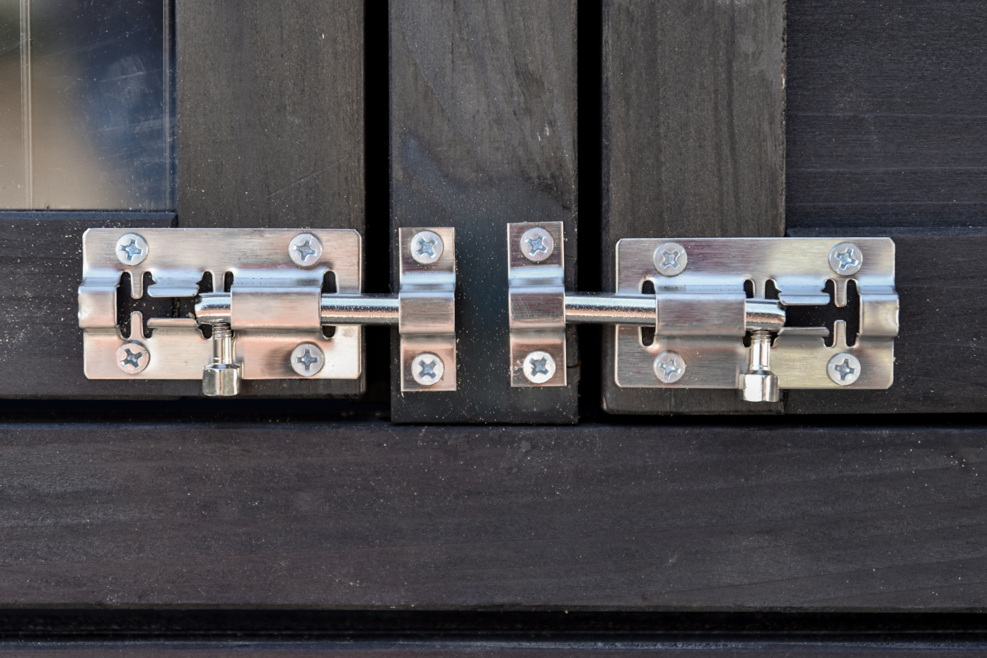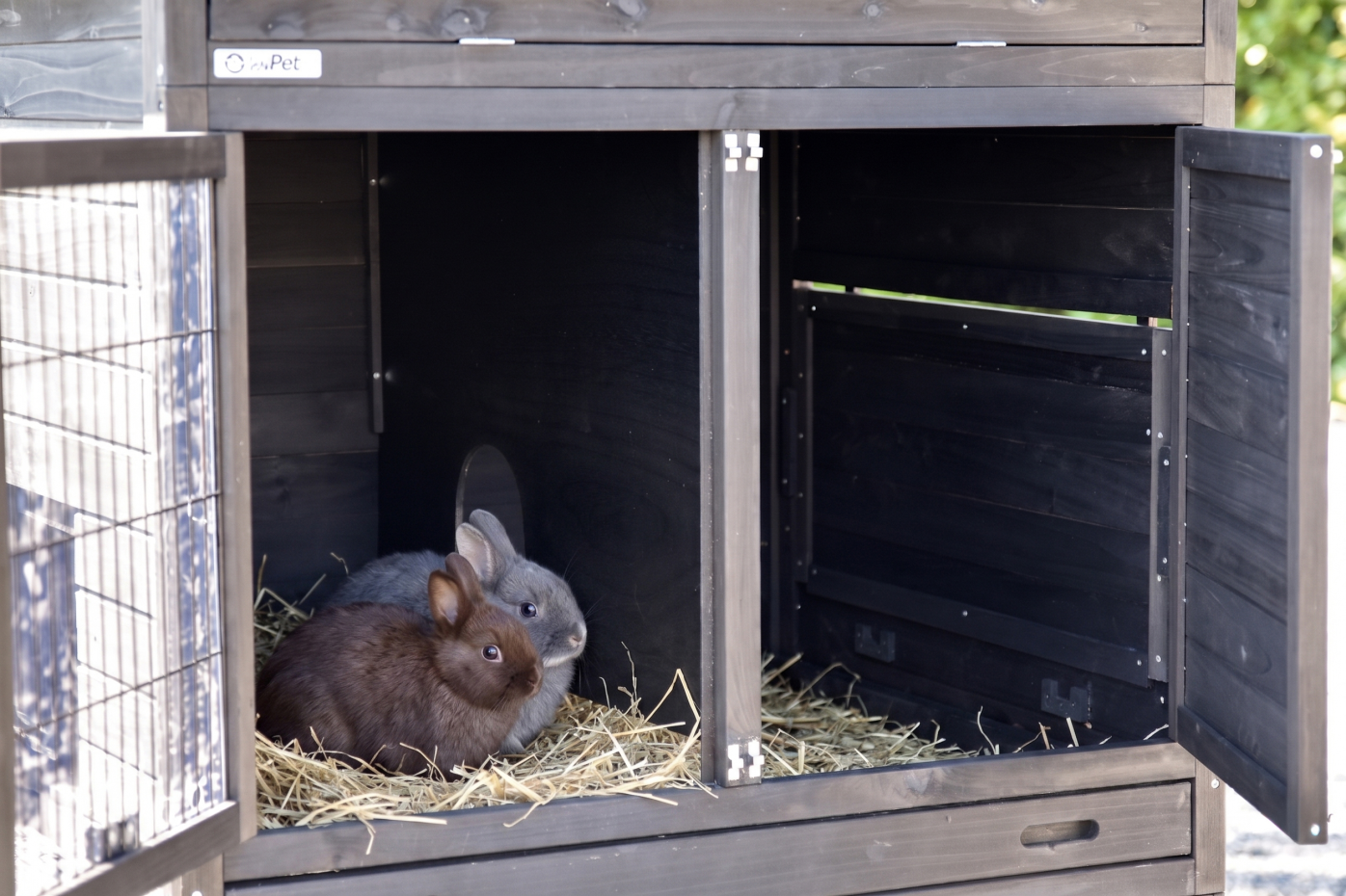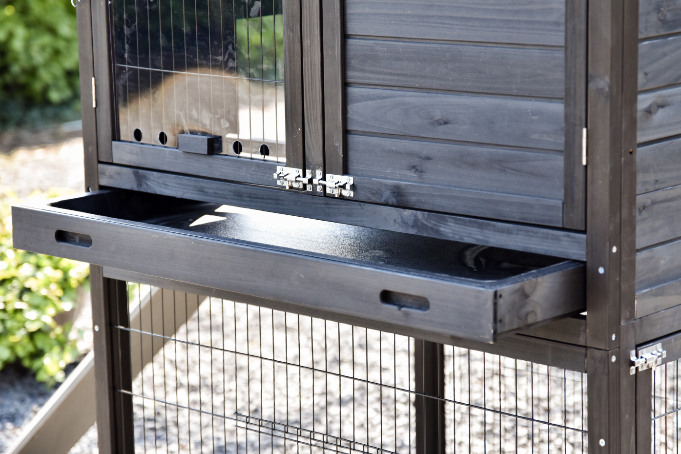 - Die Türen dieses Kaninchenstalls sind mit doppelten Schieberiegeln ausgestattet