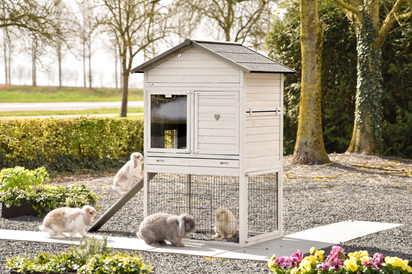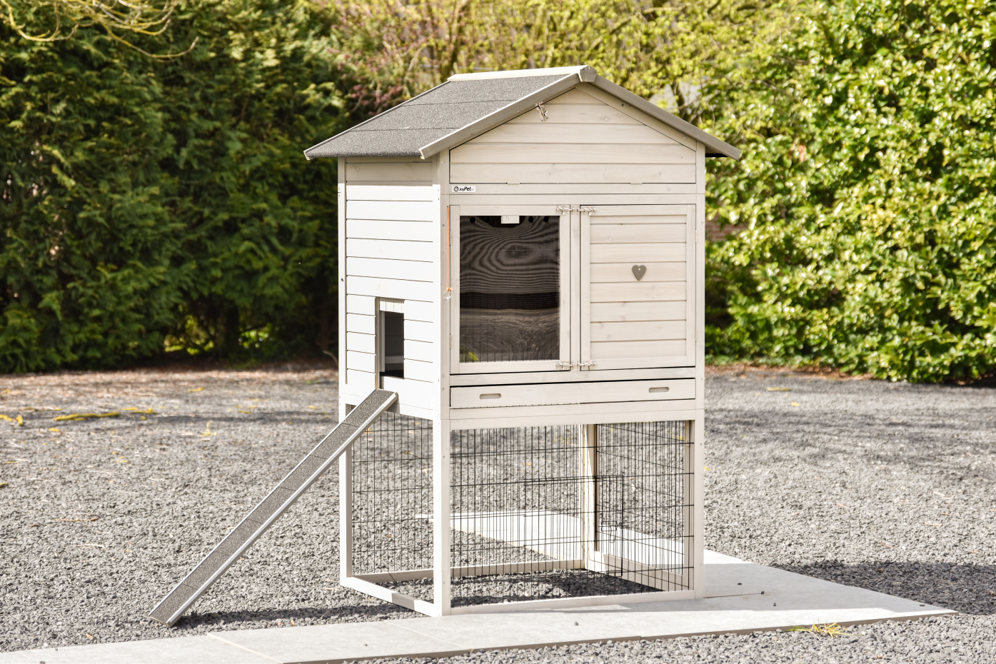Ein geräumiger und praktischer Kaninchenstall, in dem sich Ihre Kaninchen sofort wohlfühlen Das großzügige Schlafhaus sorgt für Komfort und Ruhe, während die großen Türen die Pflege erleichtern Dieses kompakte Schlafhaus ist ideal für die Platzierung in einem großen Auslauf oder auf einer Wiese, sodass Ihre Kaninchen ausreichend Bewegungsfreiheit haben Dank der Gummifüße ist der Stall vor aufsteigender Feuchtigkeit geschützt Außerdem lässt sich der Kaninchenstall einfach mit bestehenden Ausläufen kombinieren, sodass Sie das Ganze endlos erweitern können