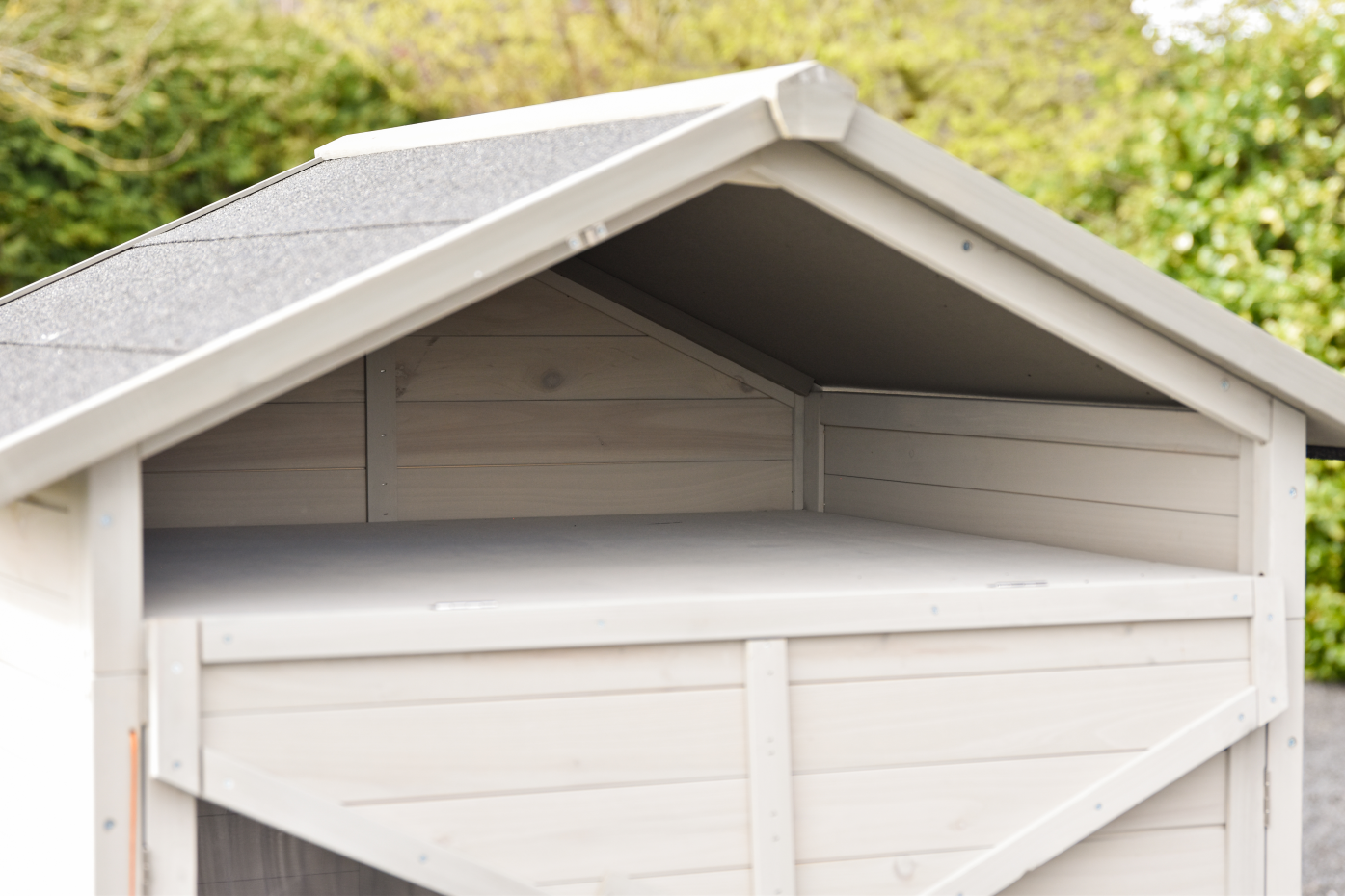 - Der Stall hat einen praktischen Stauraum im Dach.