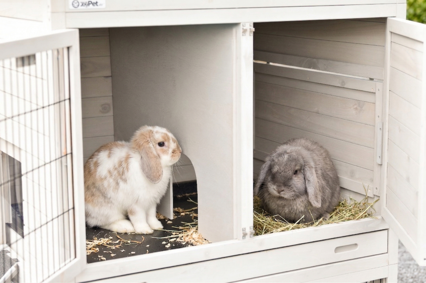 - Die Türen dieses Kaninchenstalls sind mit doppelten Schieberiegeln ausgestattet