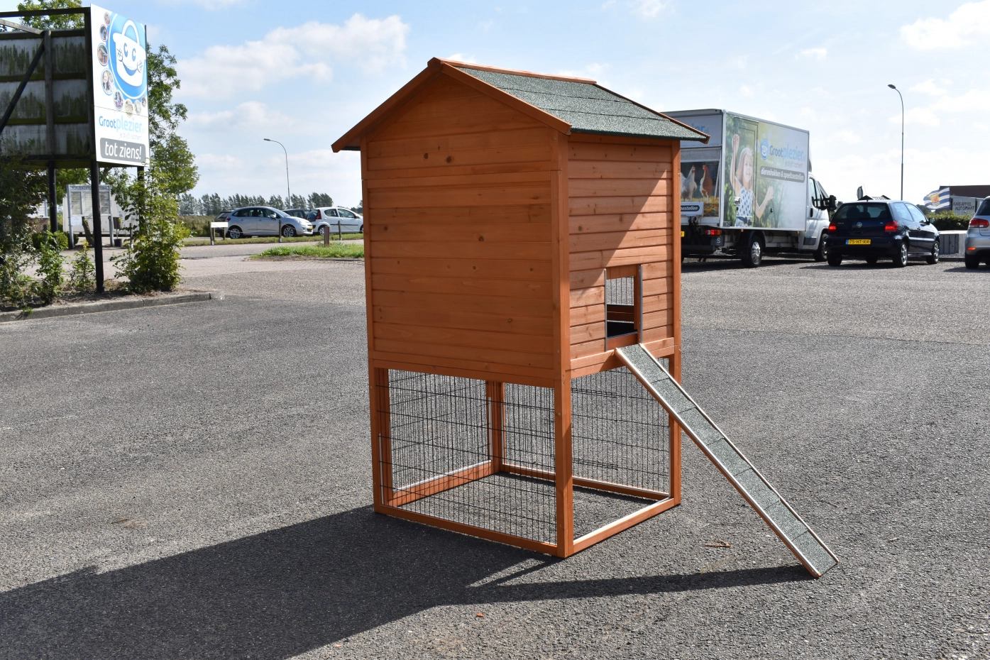 - Der Stall wurde aus schönem Kiefernholz hergestellt