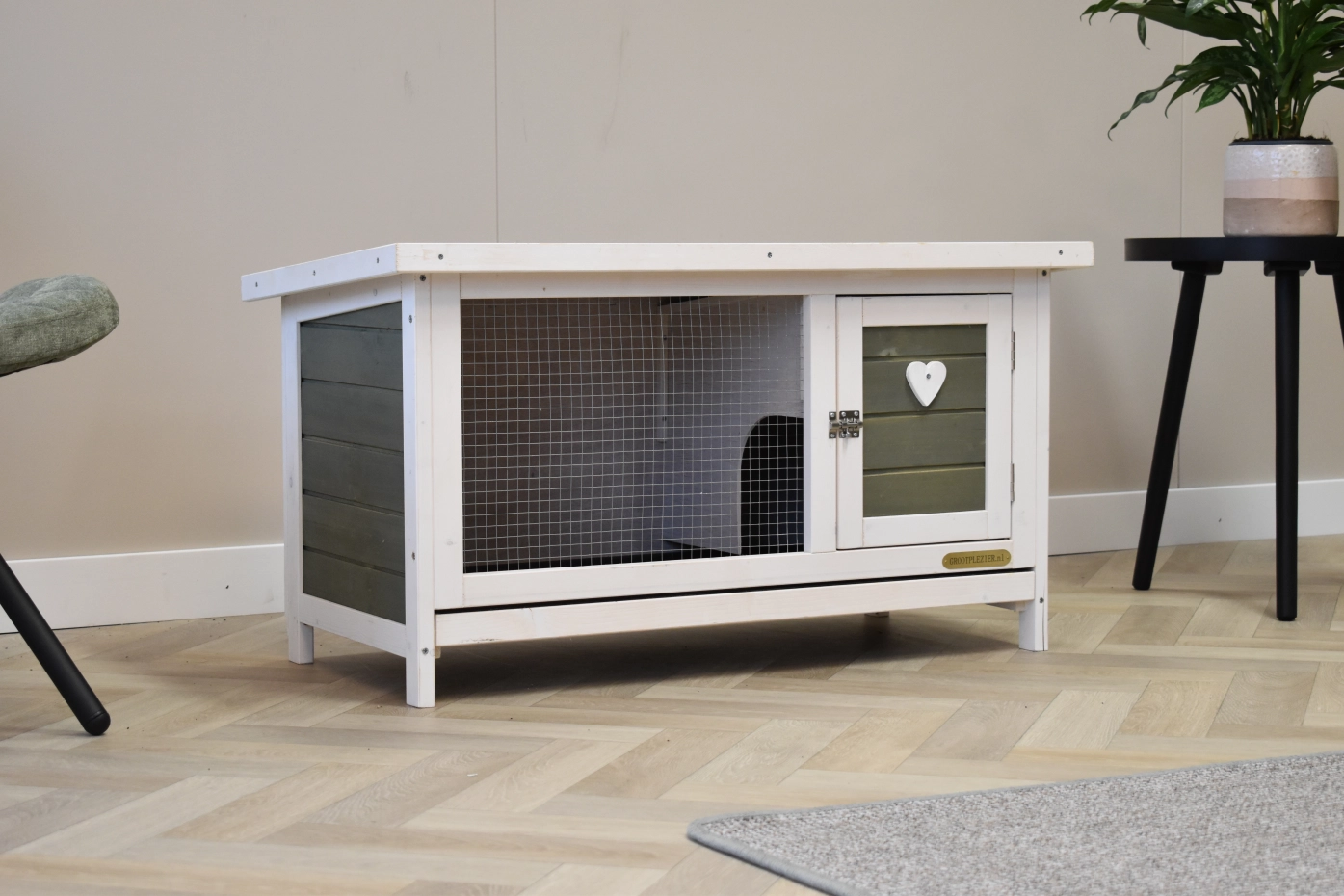 Diese kleine Stall Boemsy ist geeignet für ein kleines Kaninchen, aber auch für Meerschweinchen. Diese kleine Stall ist ausgestattet mit ein Schlafraum und ein Schublade, wodurch der Stall leicht zu reinigen ist. Der Stall steht auf kleine Füße und ist geeignet für 1 kleines Kaninchen.