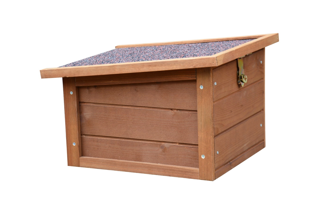 Zur Vermeidung von Rost- und Korrosionsbildung empfiehlt es sich, Schlösser und Beschläge regelmäßig mit Silikonspray oder Schlösserspray zu behandeln. Steht die Tierunterkunft nicht an einem geschützten Ort, empfehlen wir Ihnen, die Tierunterkunft zu verankern.