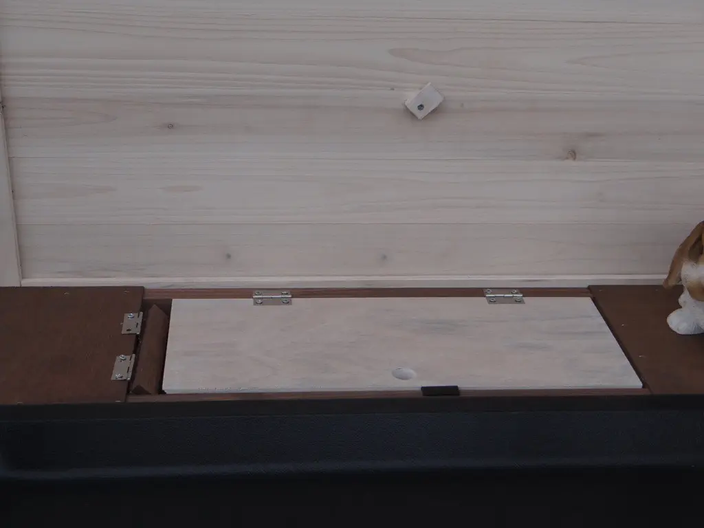 - Die Rückwand dieses Stalles ist aus massivem Vollholz.