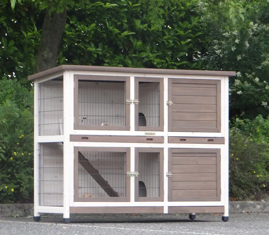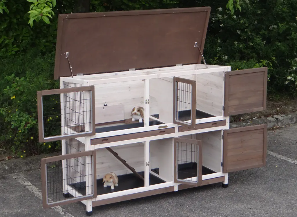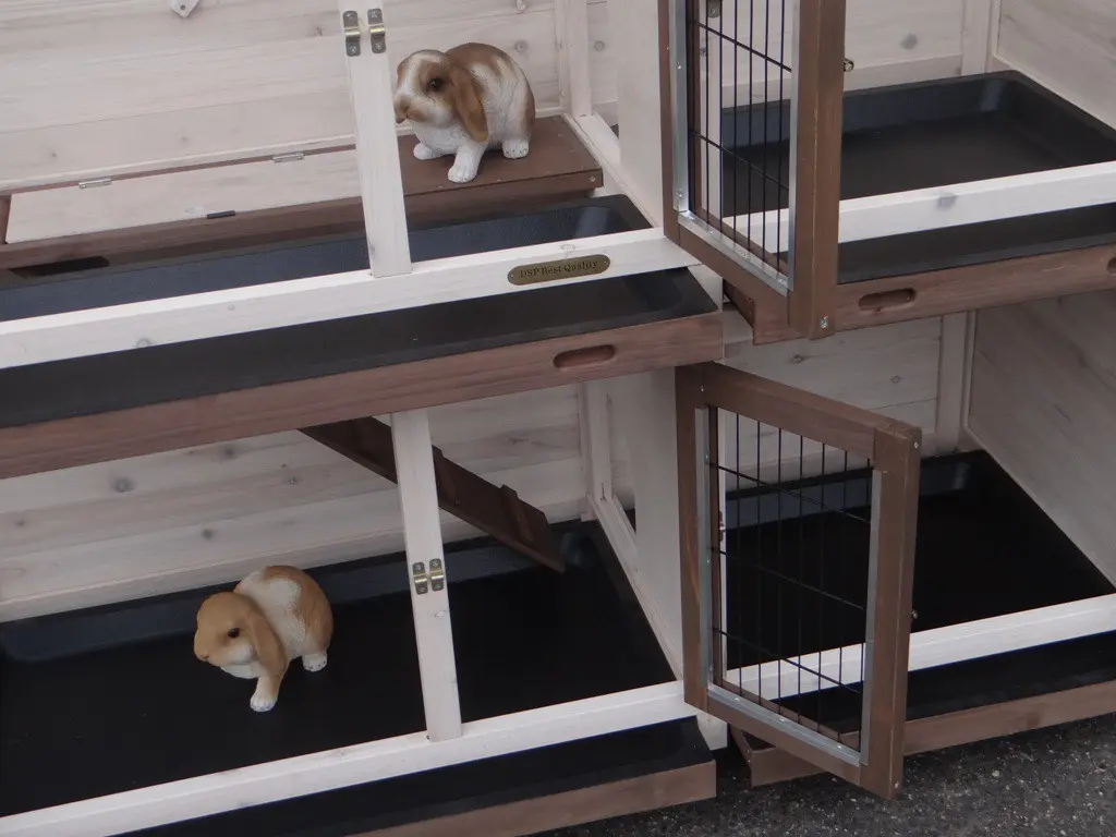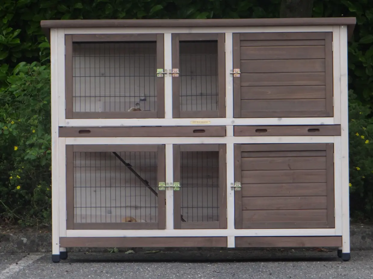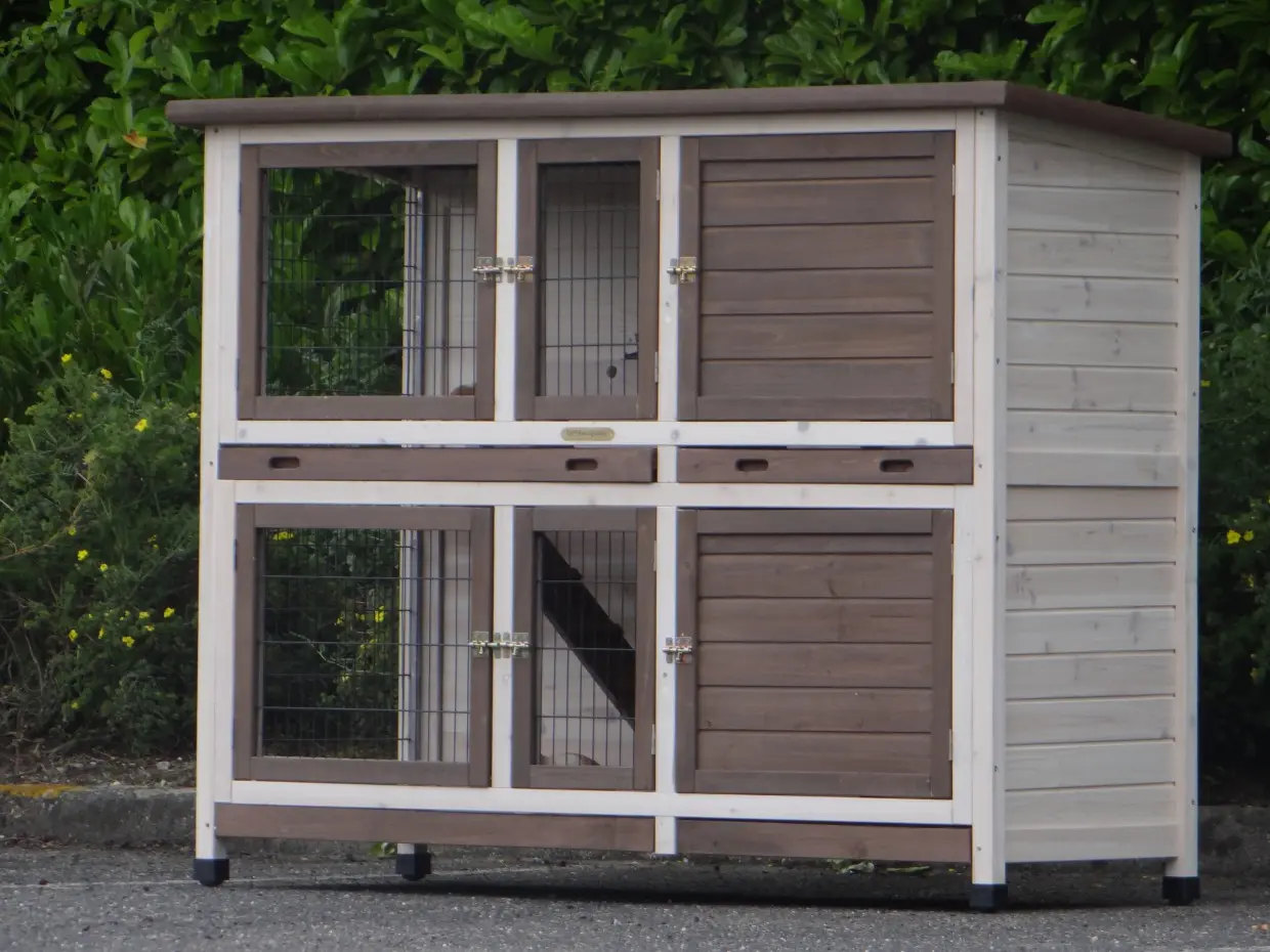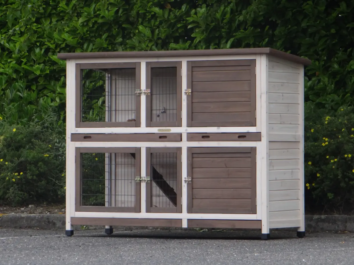 - Der Kaninchenstall besitzt eine praktische, herausziehbare Kotwanne.