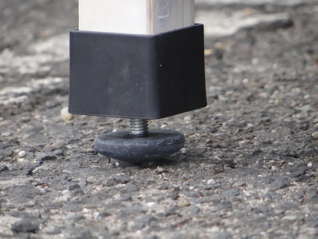 - Dieser Stall ist mit verstellbaren Kunststoff-Füßen ausgestattet.