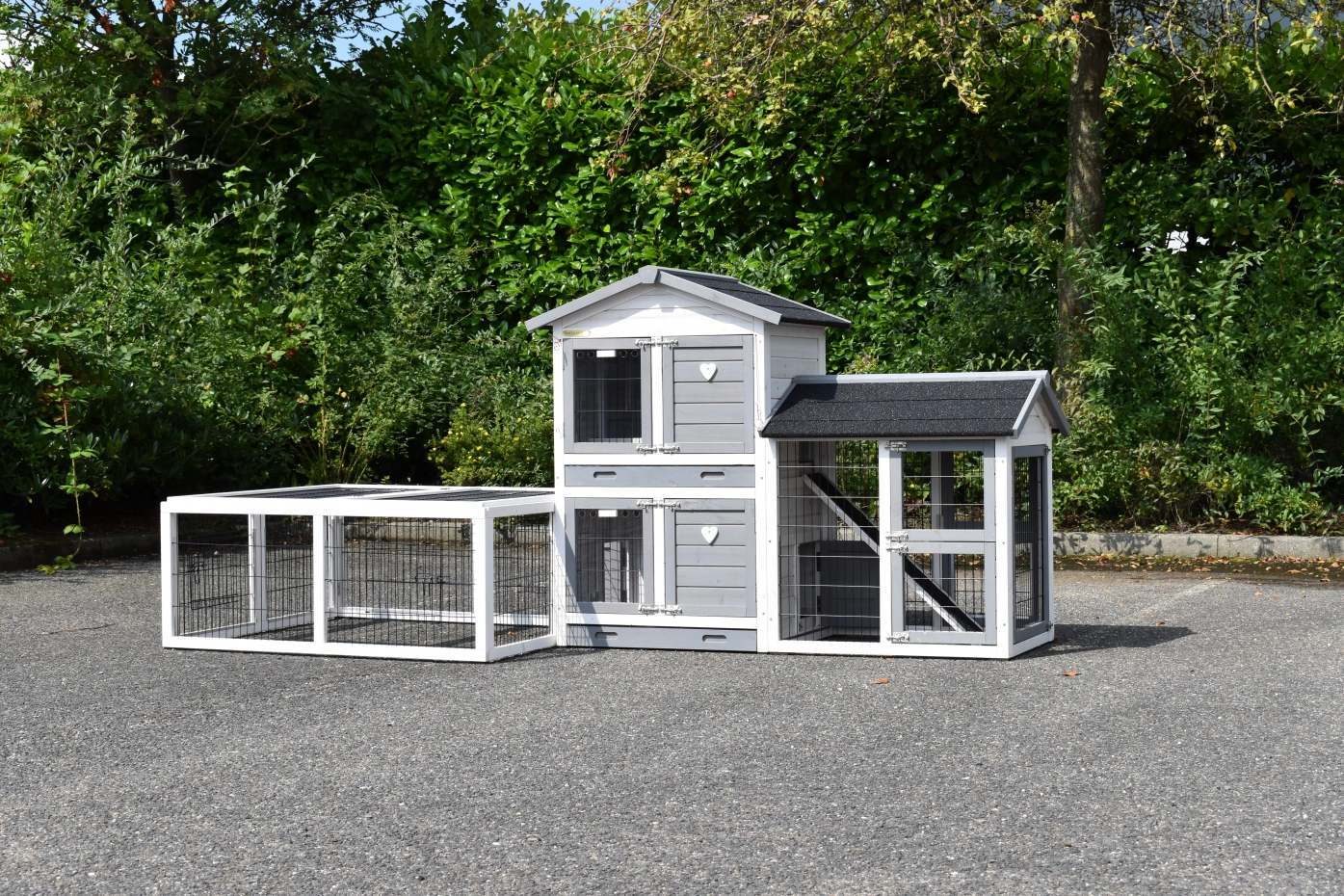 - Der Kaninchenstall besitzt eine praktische, herausziehbare Kotwanne.