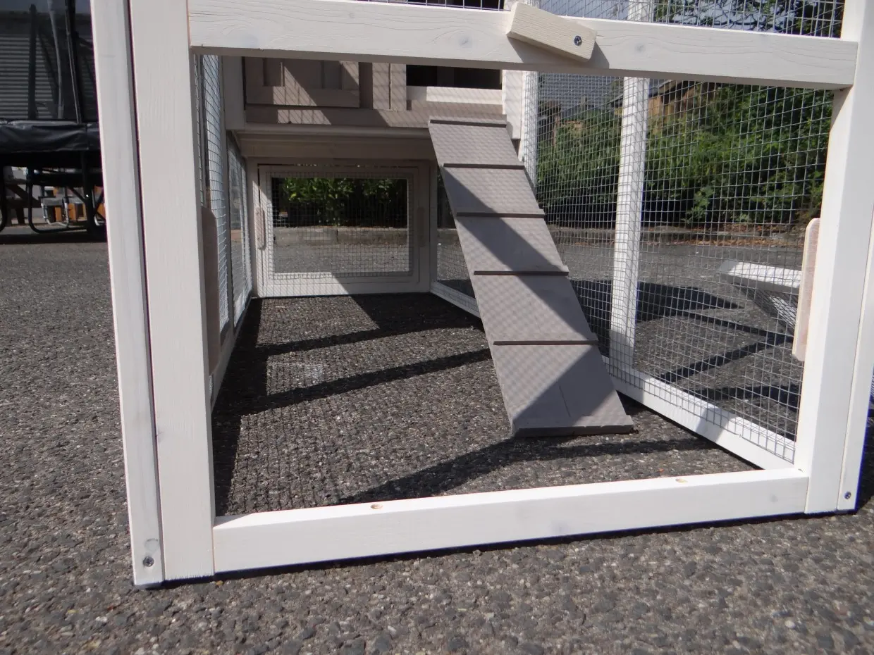 - Der Auslauf hat ein Dach aus Gitter (ca. 12x12mm)
