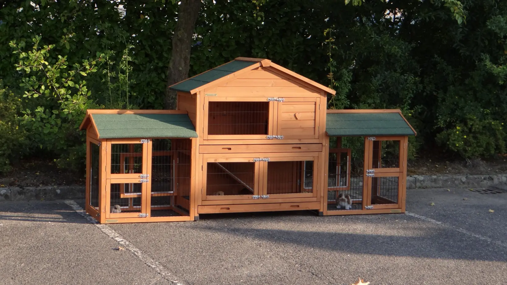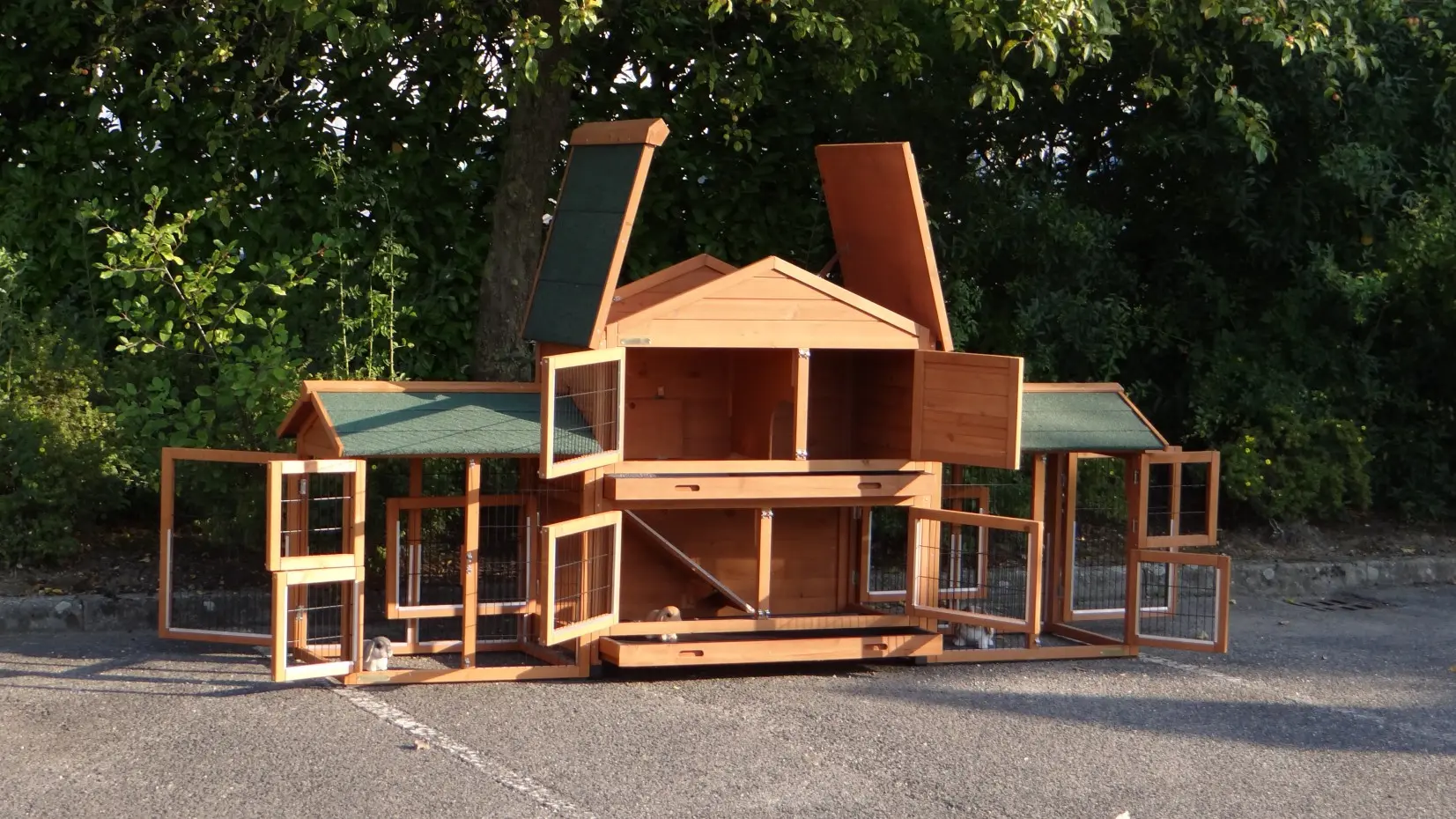 - Der Kaninchenstall besitzt eine praktische, herausziehbare Kotwanne.