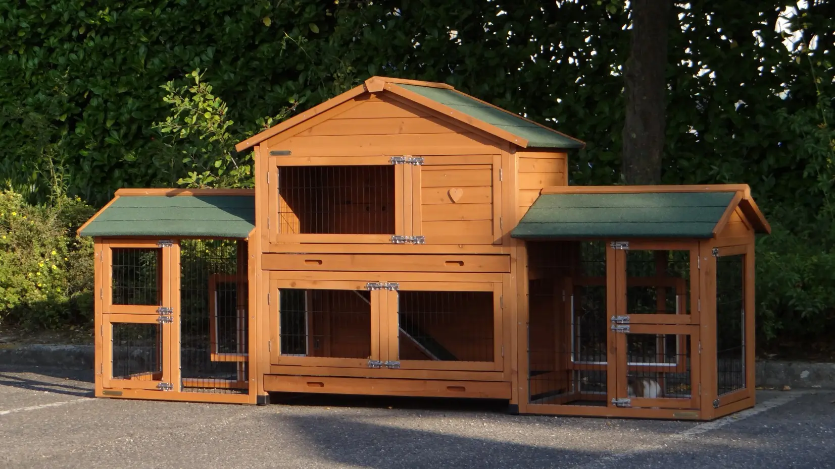 Das Kaninchenhaus Excellent Medium mit 2 Space Small Anbaugehegen ist ein geräumiges und durchdacht gestaltetes Kaninchengehege. Es wurde speziell entwickelt, um Ihren Kaninchen auch im Winter einen komfortablen Lebensraum zu bieten, dank des Plexiglases, das zusätzliche Isolierung und Schutz bietet. Mit großzügigen Türen und praktischen Schubladen ist dieses Kaninchenhaus ideal für die Unterbringung Ihrer Kaninchen.