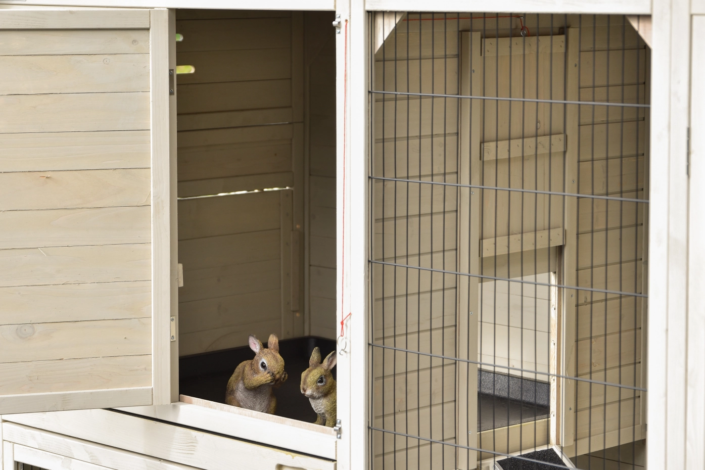 - Die Türen dieses Kaninchenstalls sind mit doppelten Schieberiegeln ausgestattet