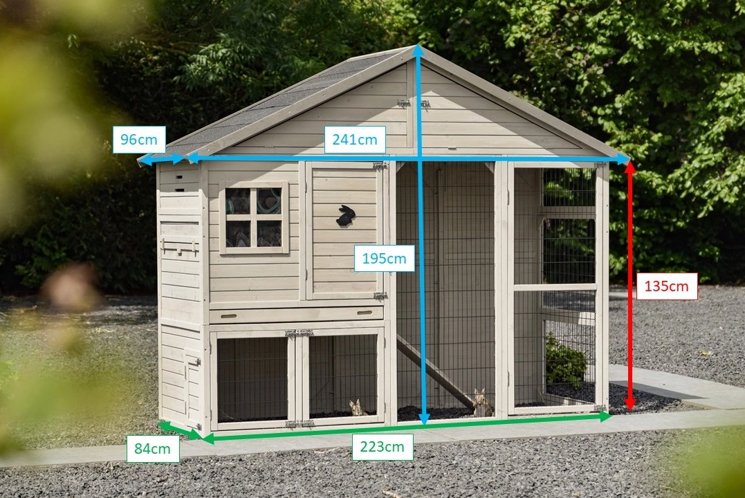 Kaninchenstall Holiday Large Light-grey ist ein praktische und schöne Stall von Top-Qualität. Der Holiday Large ist ein große Stall mit ein groß Schlafraum, ein Auslauf und Türen mit Nageschutzstreifen. Der große Tür an der rechten Seite von der Kaninchenstall hat die Abmessungen 55x131cm. Die Tür an der Vorseite vom Schlafraum ist 41x69cm.