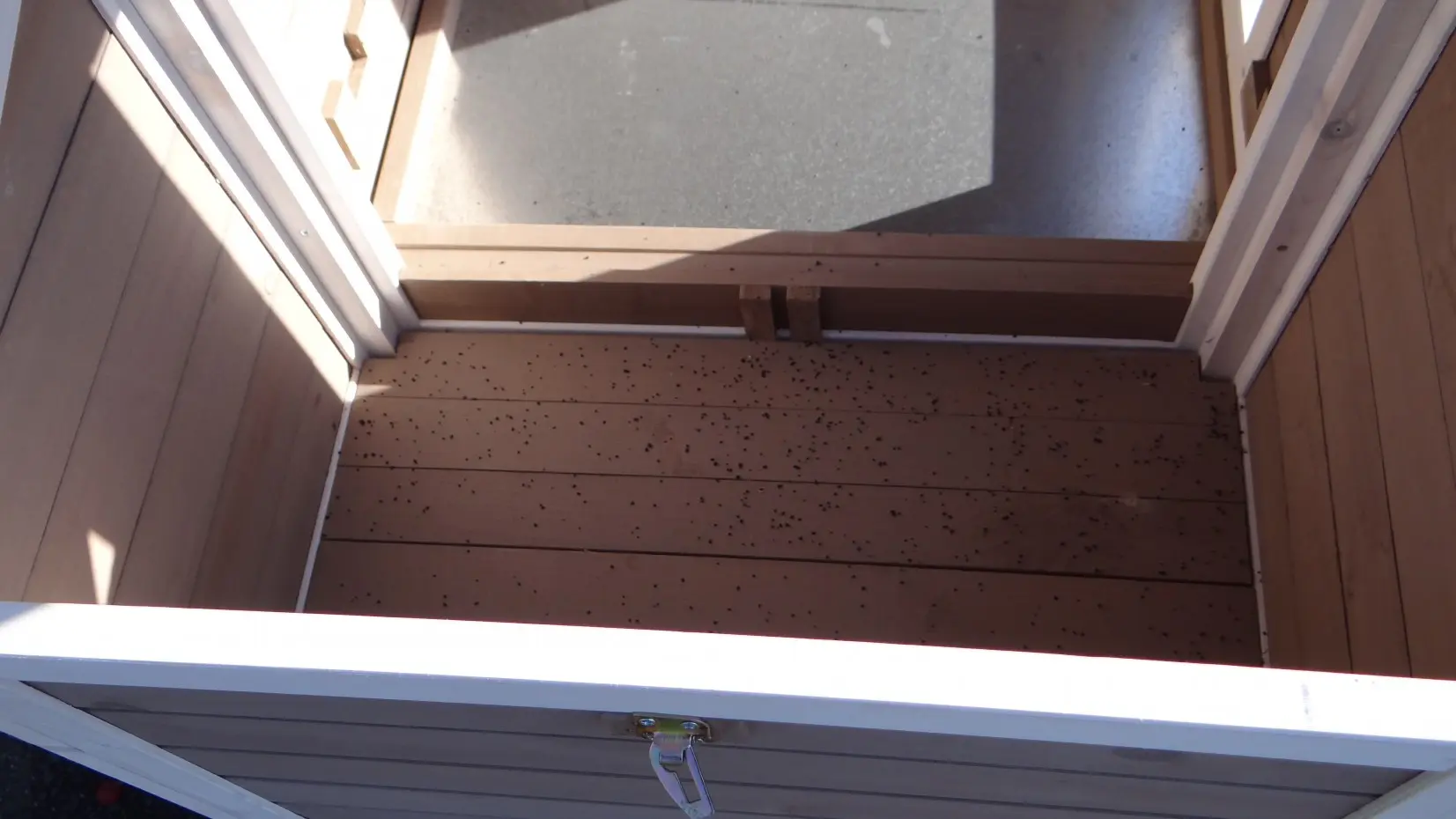 - Bei feuchtem Wetter kann das Holz erweitern und die Türen stecken bleiben