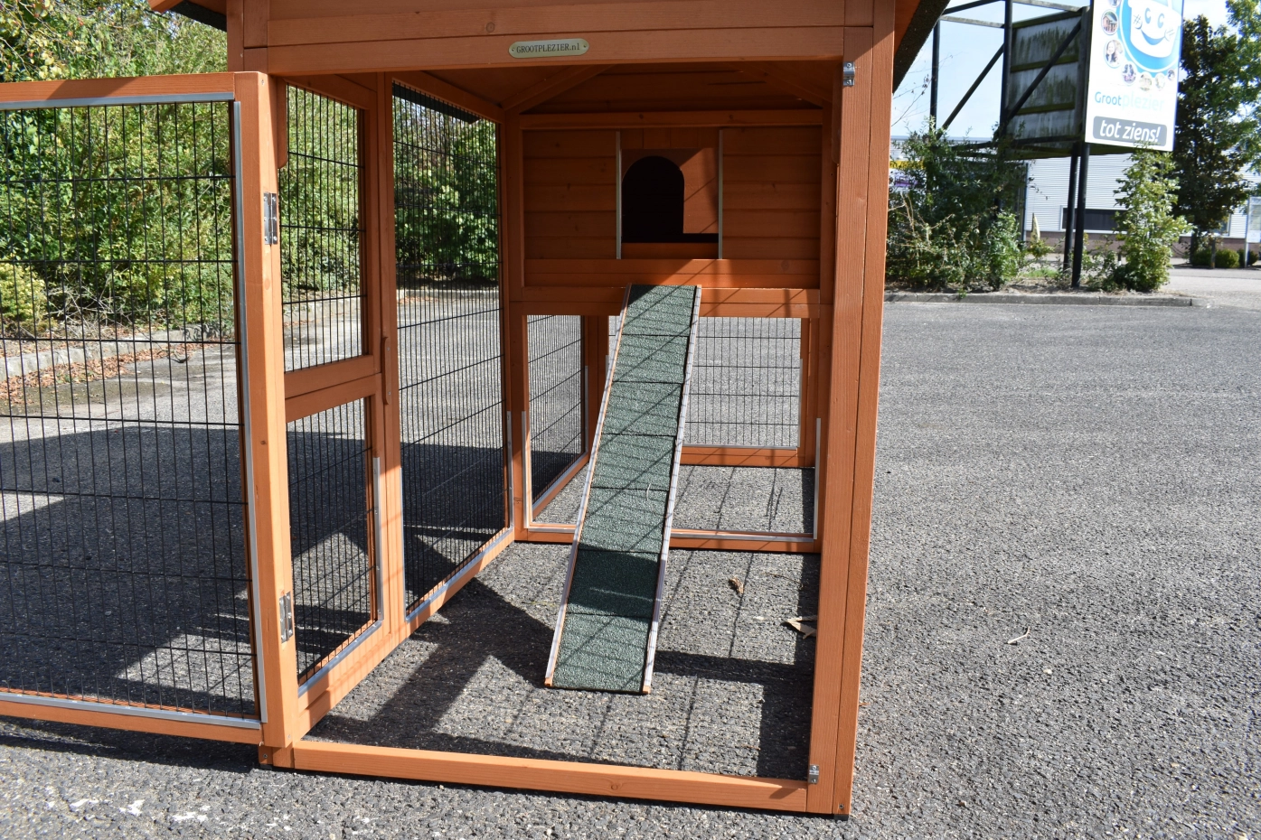 • Das Dach dieses Außengeheges ist mit Dachpappe versehen