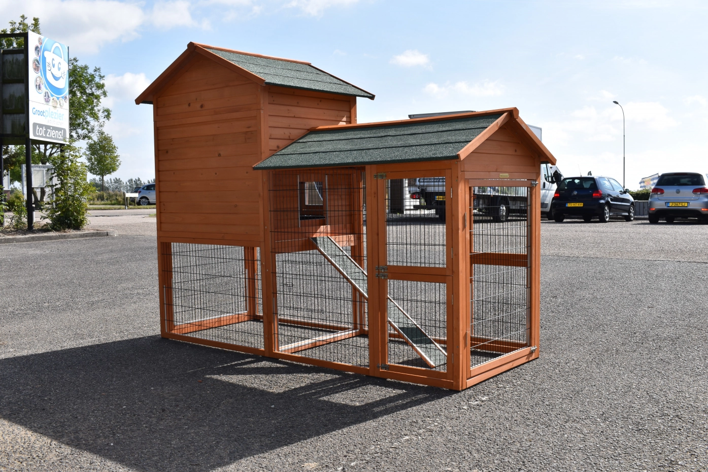 • Der Stall wurde aus schönem Kiefernholz hergestellt