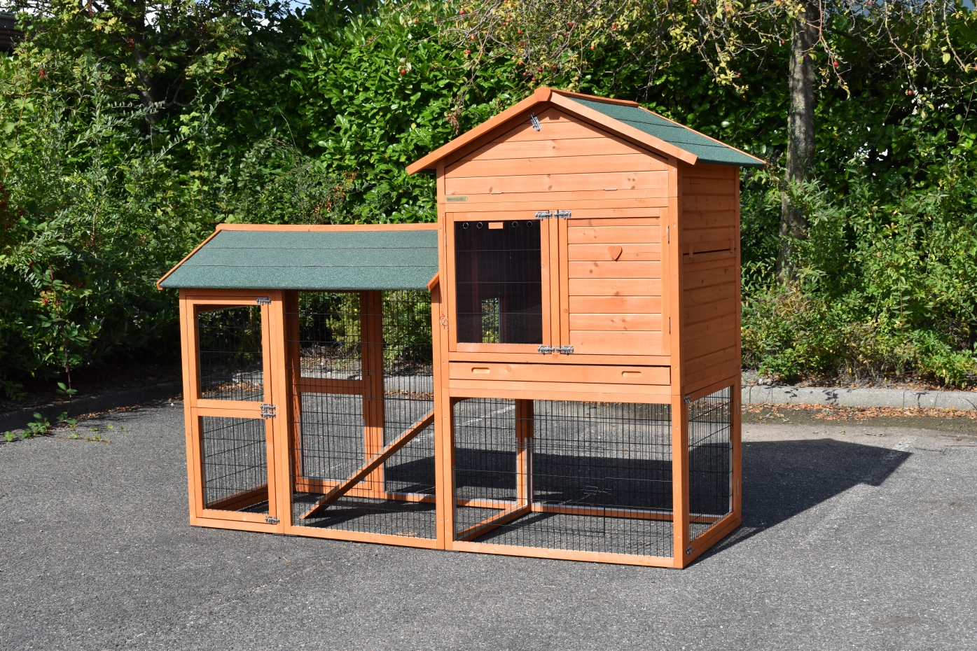• Das Dach dieses Kaninchenstalls ist mit Dachpappe versehen.