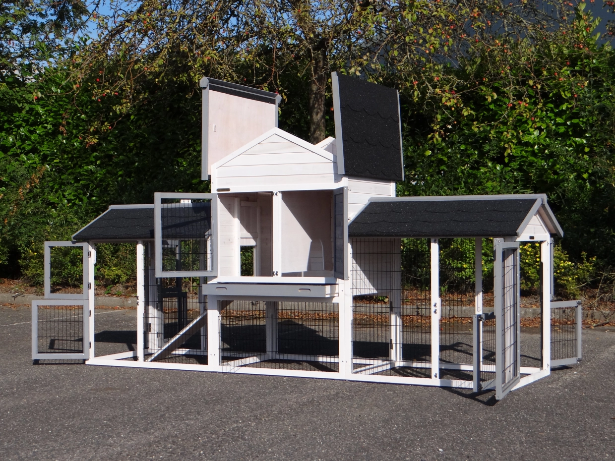 - Die Türen dieses Kaninchenstalls sind mit doppelten Schieberiegeln ausgestattet