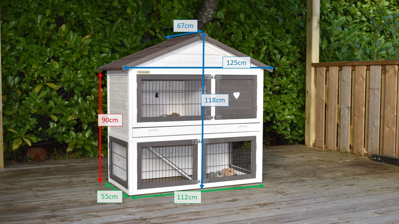 Der Kaninchenstall Regular Medium Anti-Nage ist ideal für zwei mittelgroße oder drei Zwergkaninchen. Die Schublade und großen Türen erleichtern die Reinigung. Dach mit Stauraum, abschließbarer Auslauf und Anti-Nageleisten bieten Komfort und Schutz. Mit Gummifüßen. Maße: 125 × 67 × 118 cm.