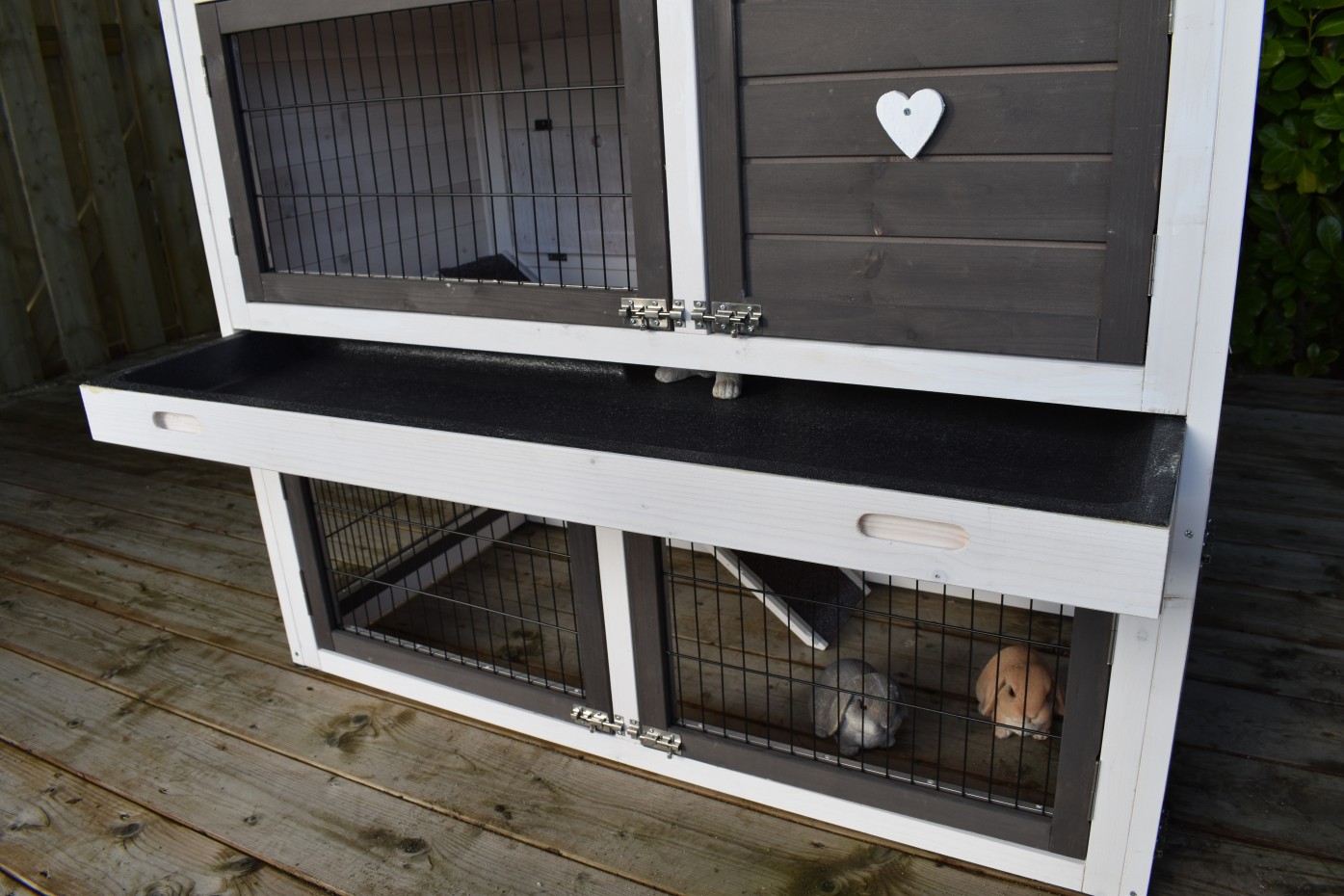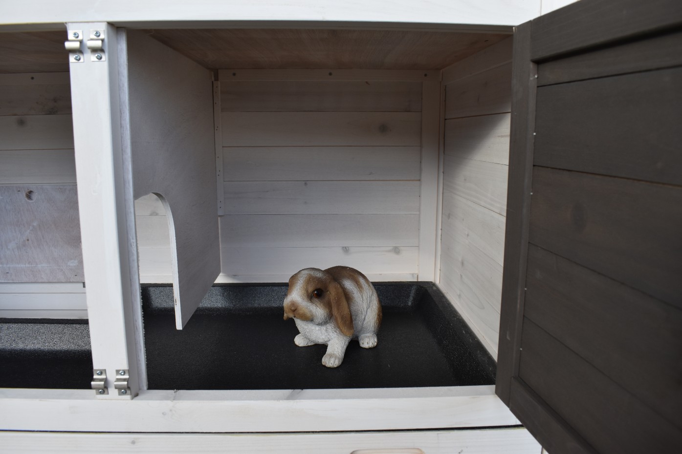 - Die Türen dieses Kaninchenstalls sind mit doppelten Schieberiegeln ausgestattet