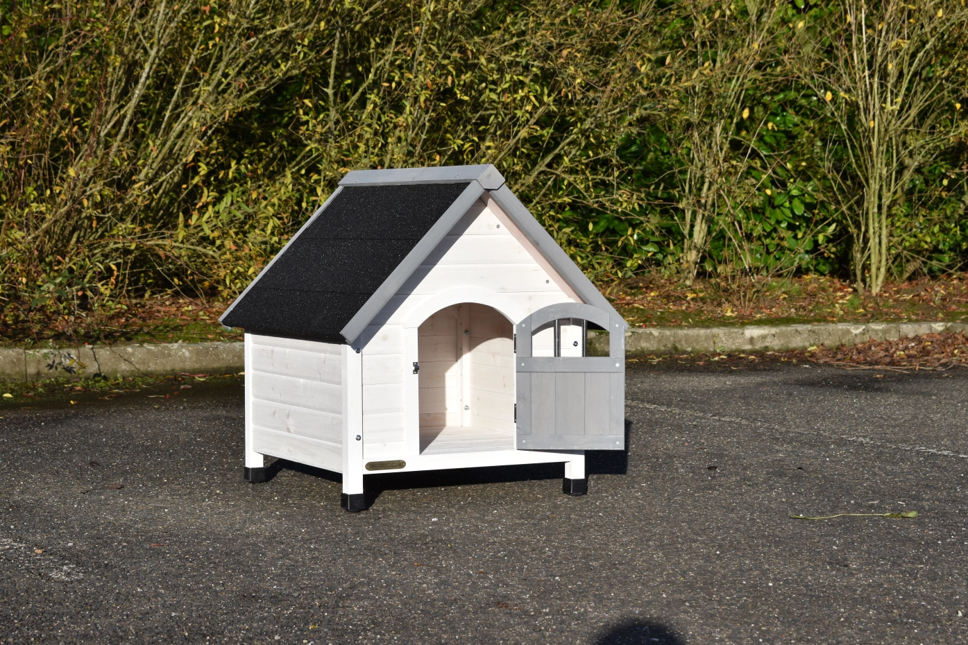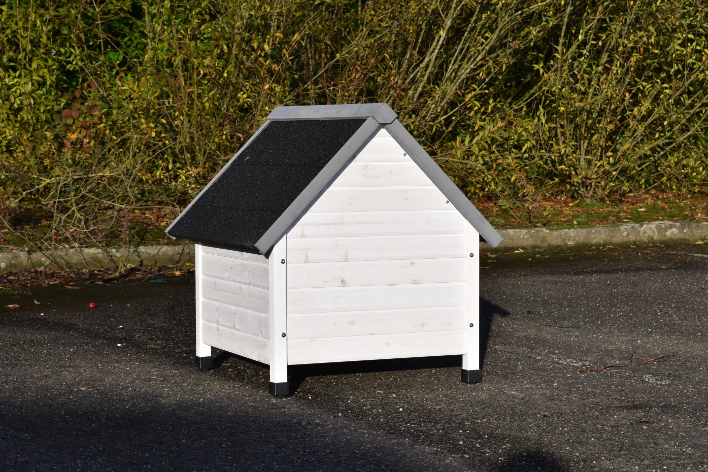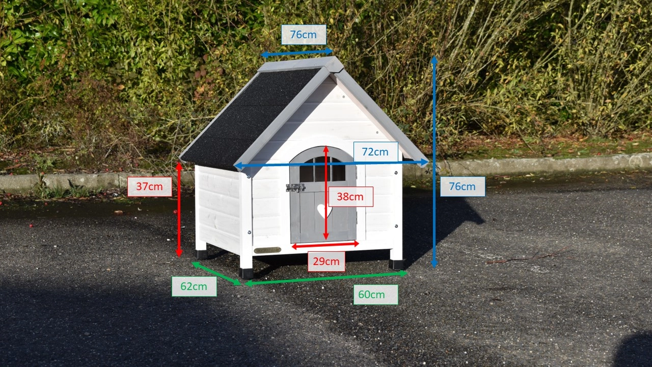 Das Katzenhaus Private 1 bietet ein schöne Platz für Ihre Katzen. Der Haus hat ein Spitzdach, welche ist ausgestattet mit schwarze Dachpappe. Das Haus ist ausgestattet mit verstellbare Füßen, so dass es überall stabil steht. Die maximale Abmessungen, inkl. Dach, sind 72x76x76cm.