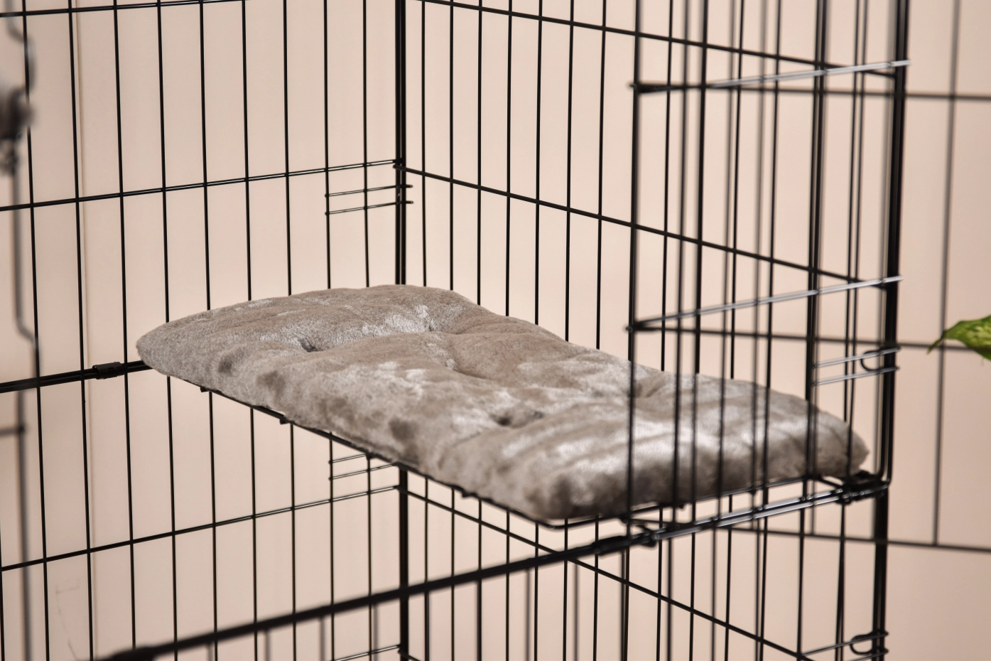 - Der Katzenkäfig ist mit 3 Einlegeböden in den Ecken ausgestattet, die leicht in der Höhe verstellbar sind