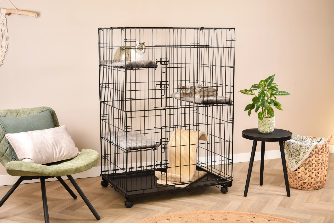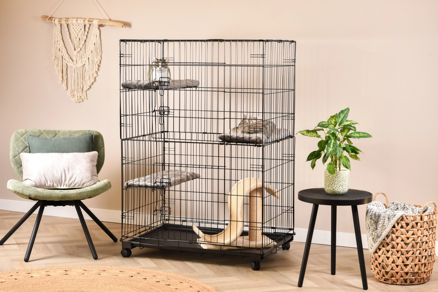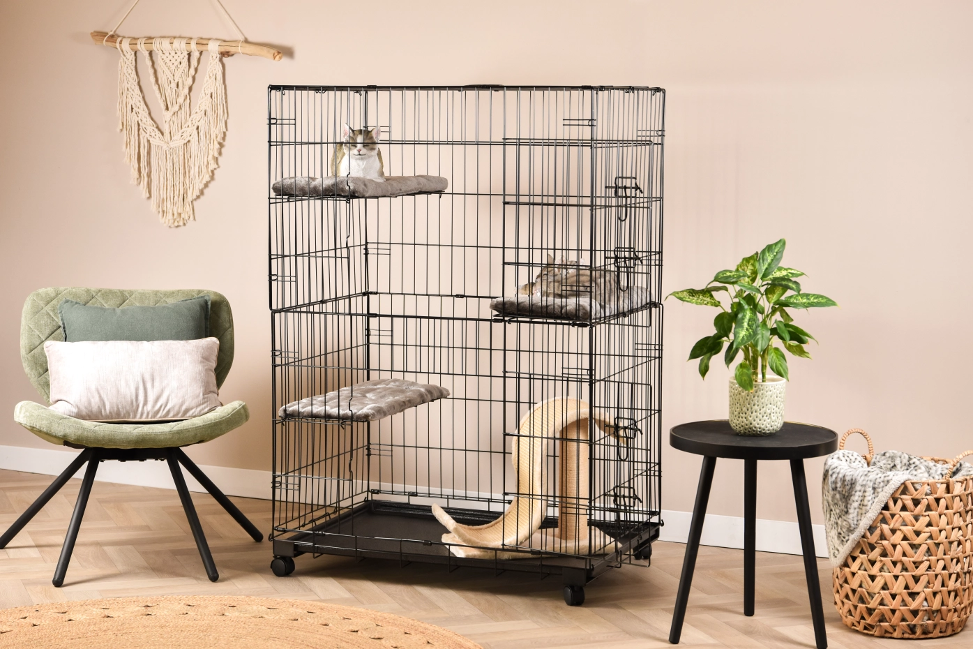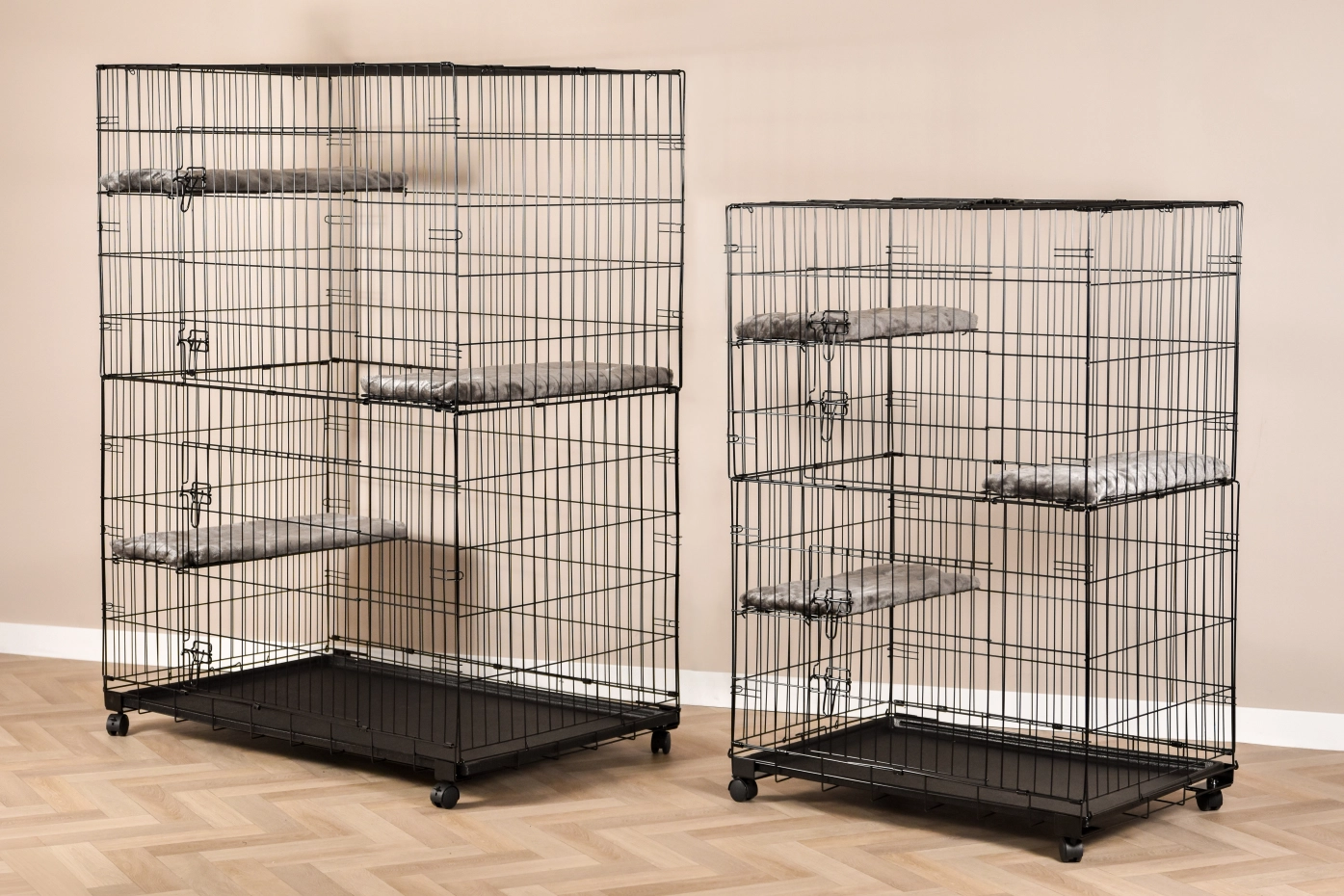 - Stabiler Katzenkäfig mit schwarz pulverbeschichteten Stäben