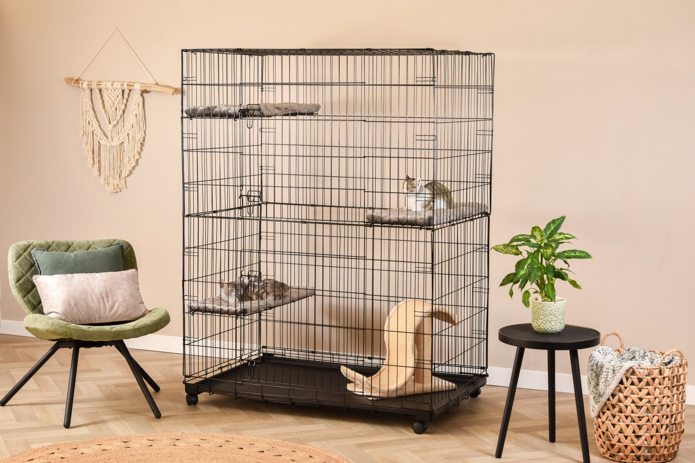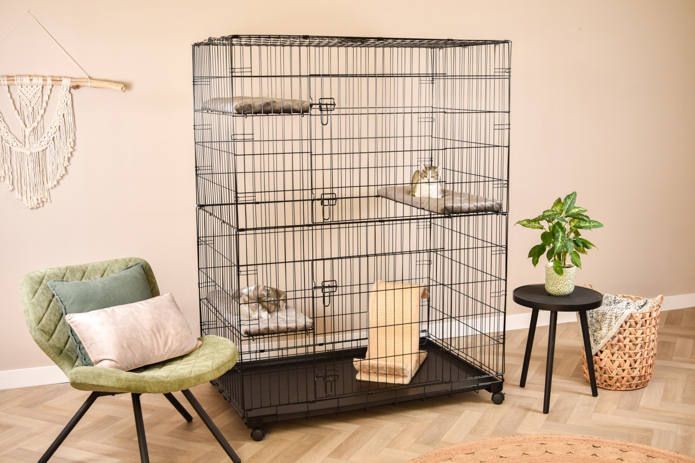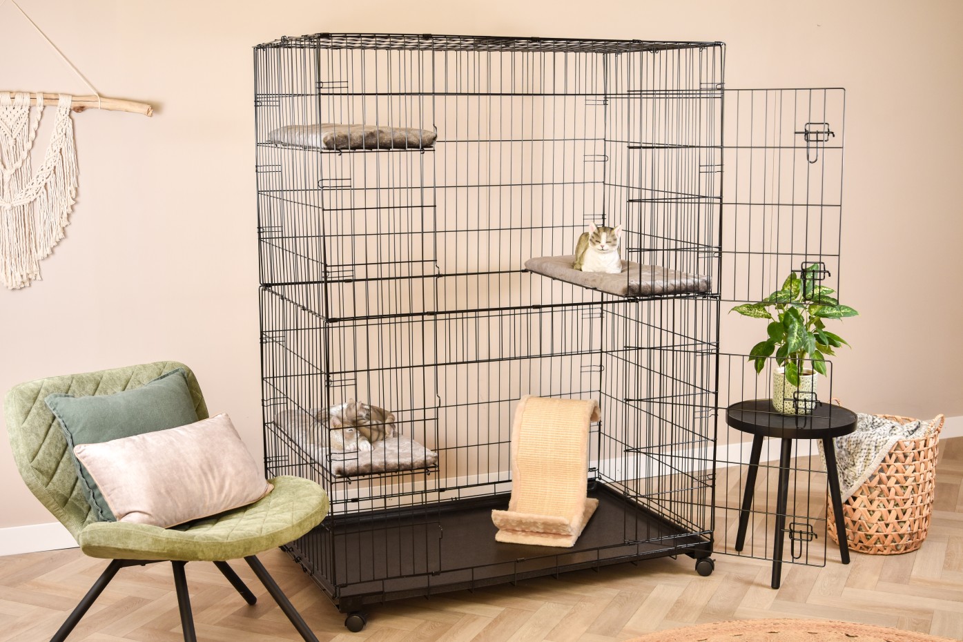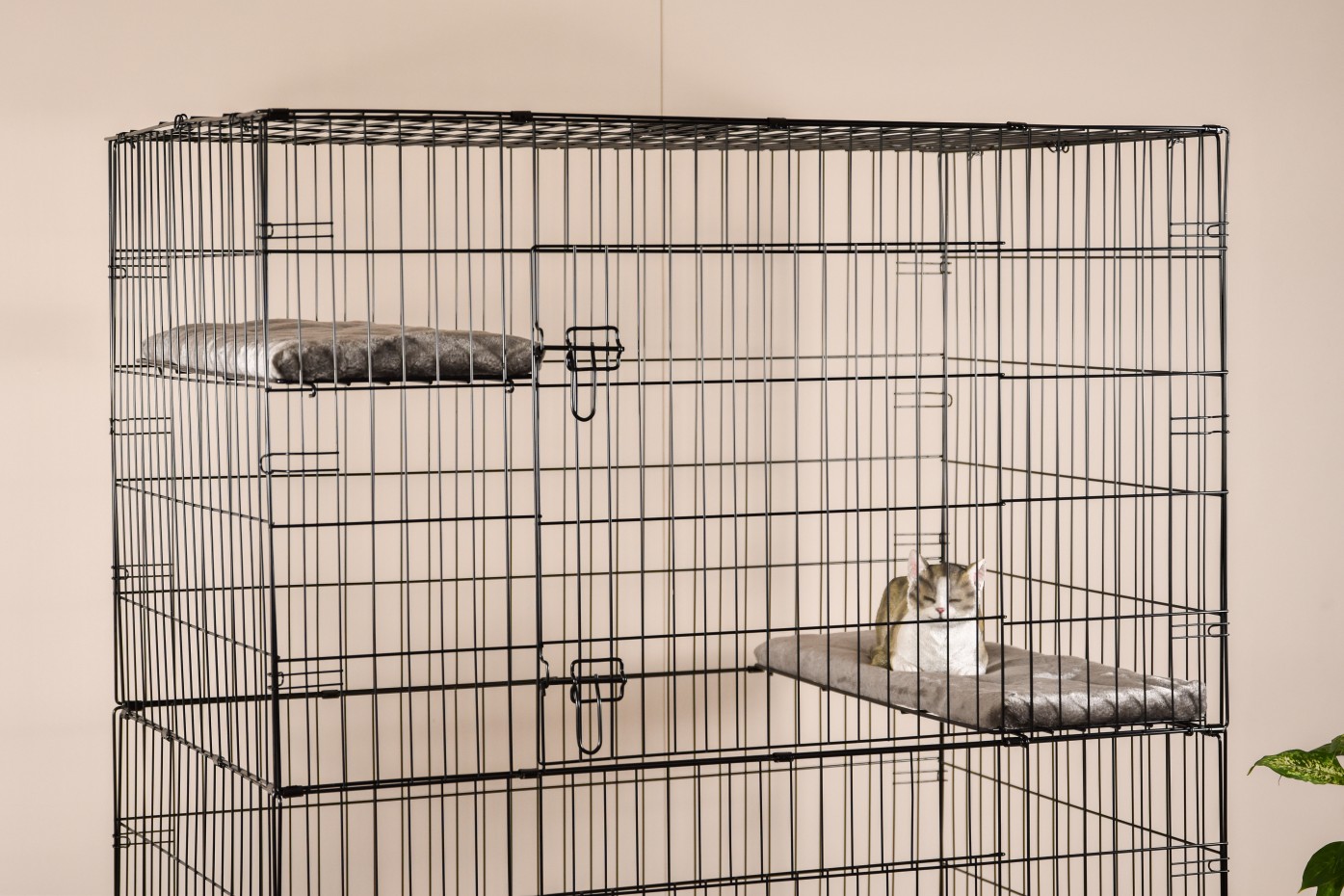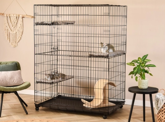 - Stabiler Katzenkäfig mit schwarz pulverbeschichteten Stäben