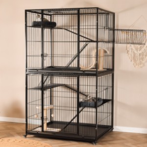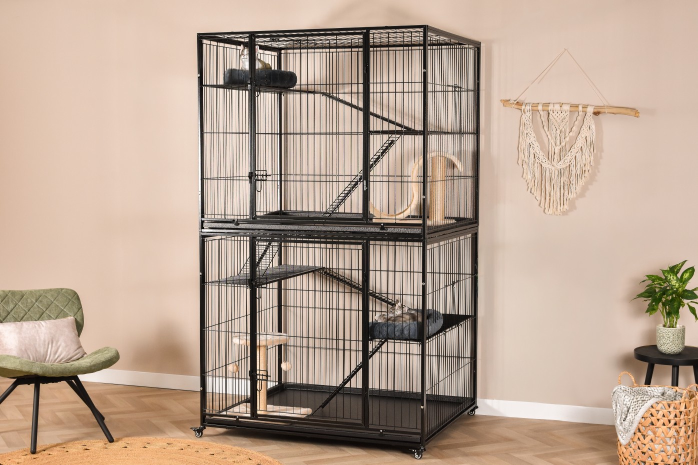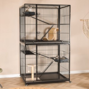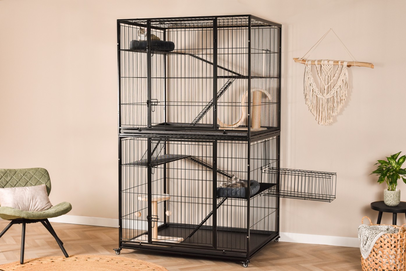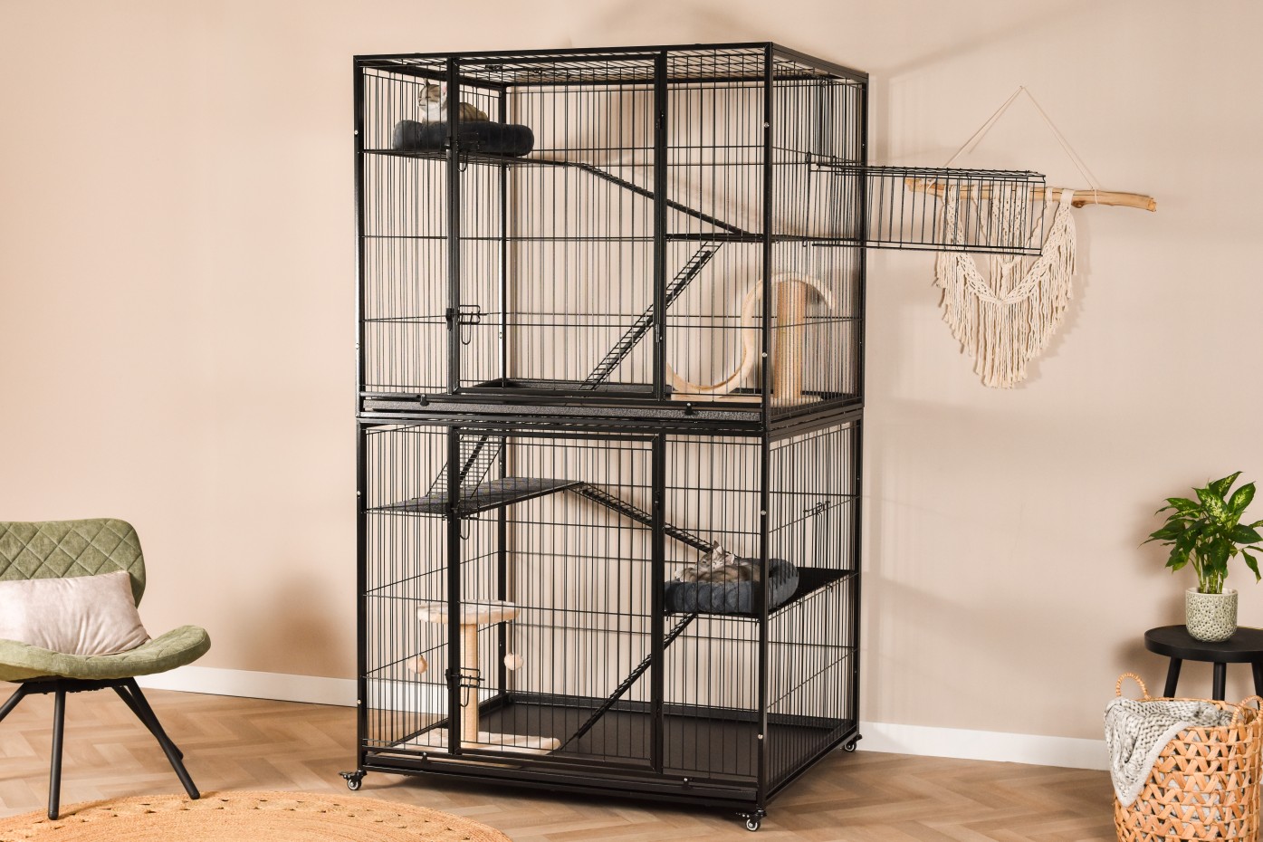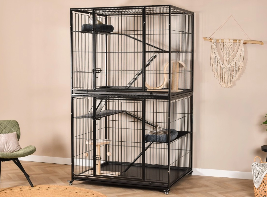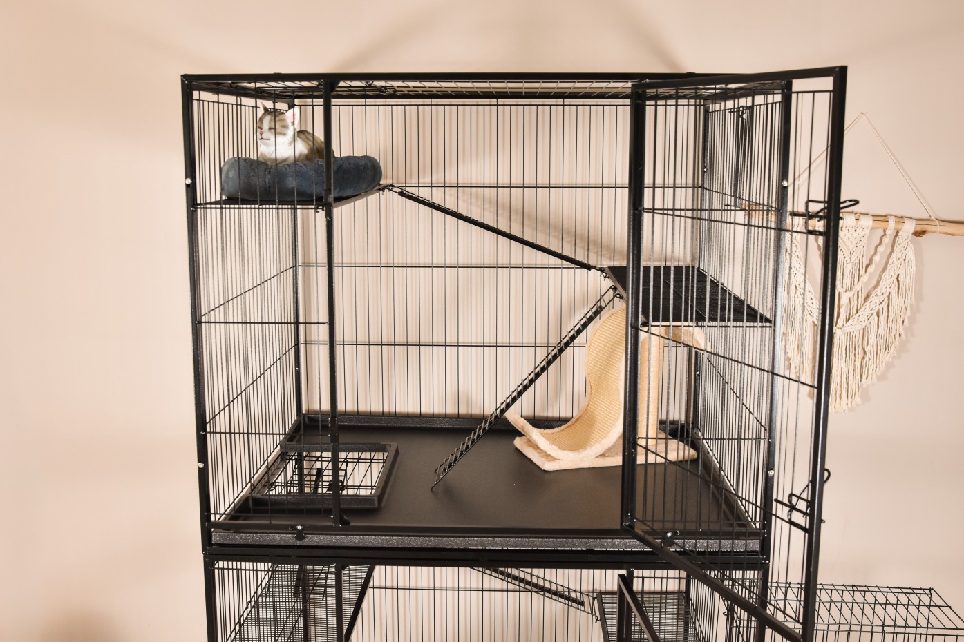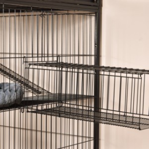 - Stabiler Katzenkäfig mit schwarzer Hammerschlag-Beschichtung der Gitterstäbe