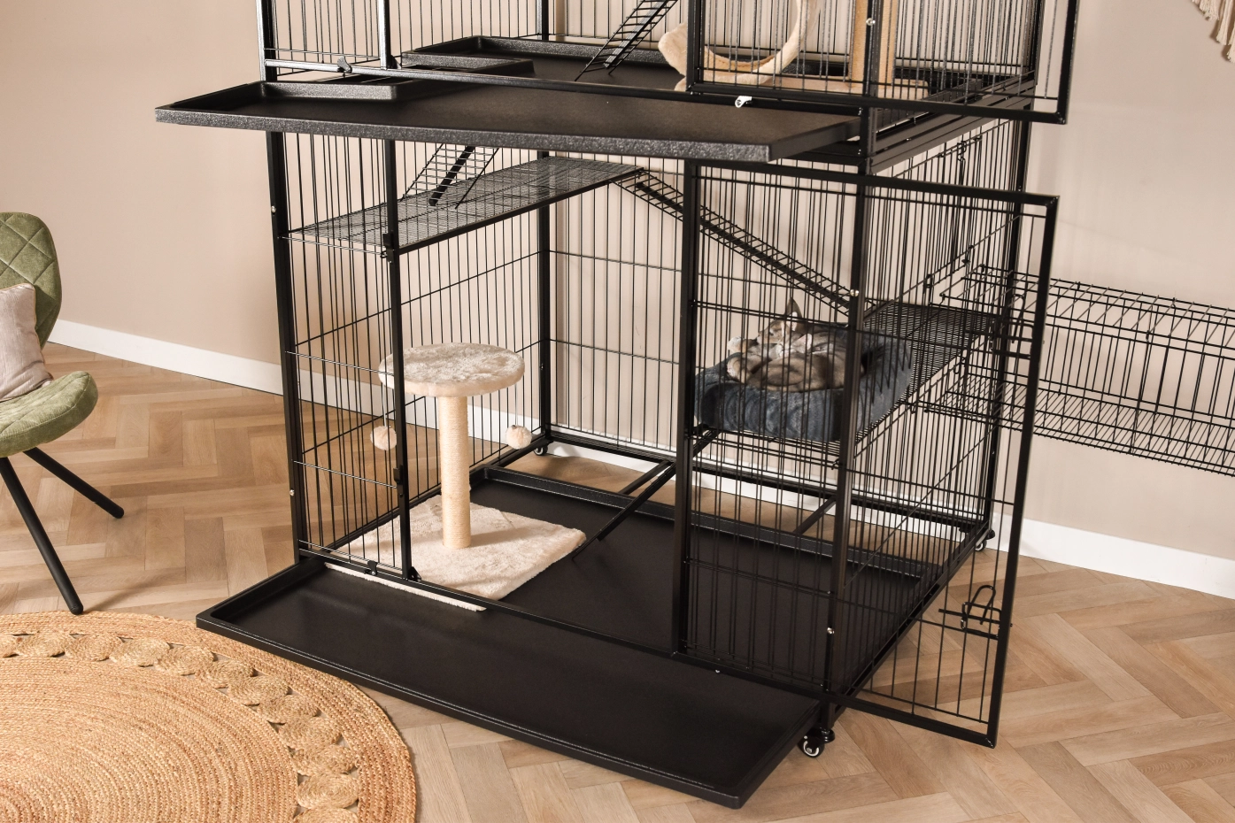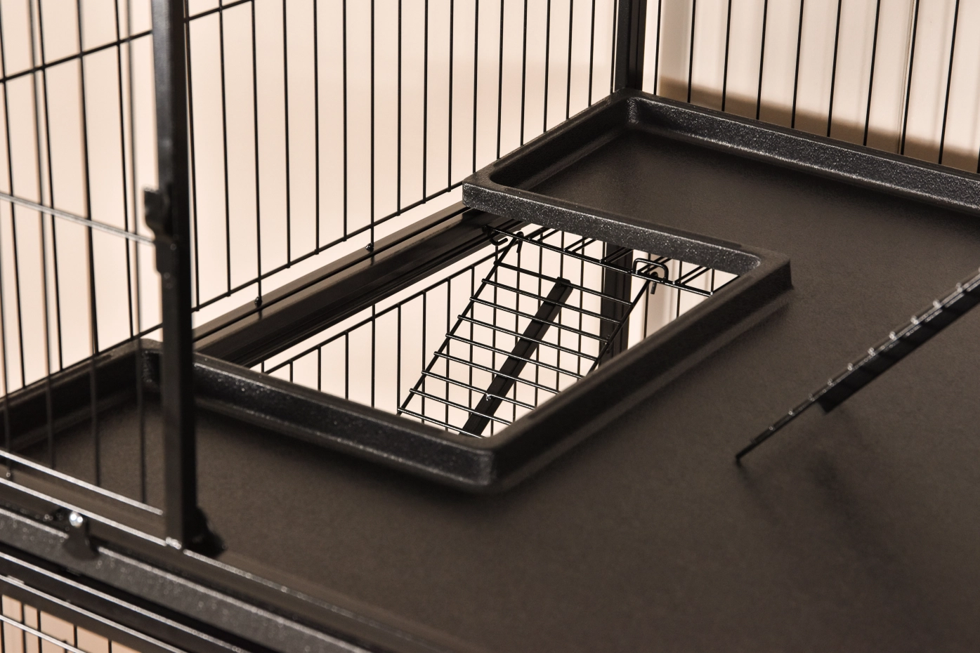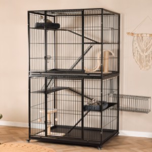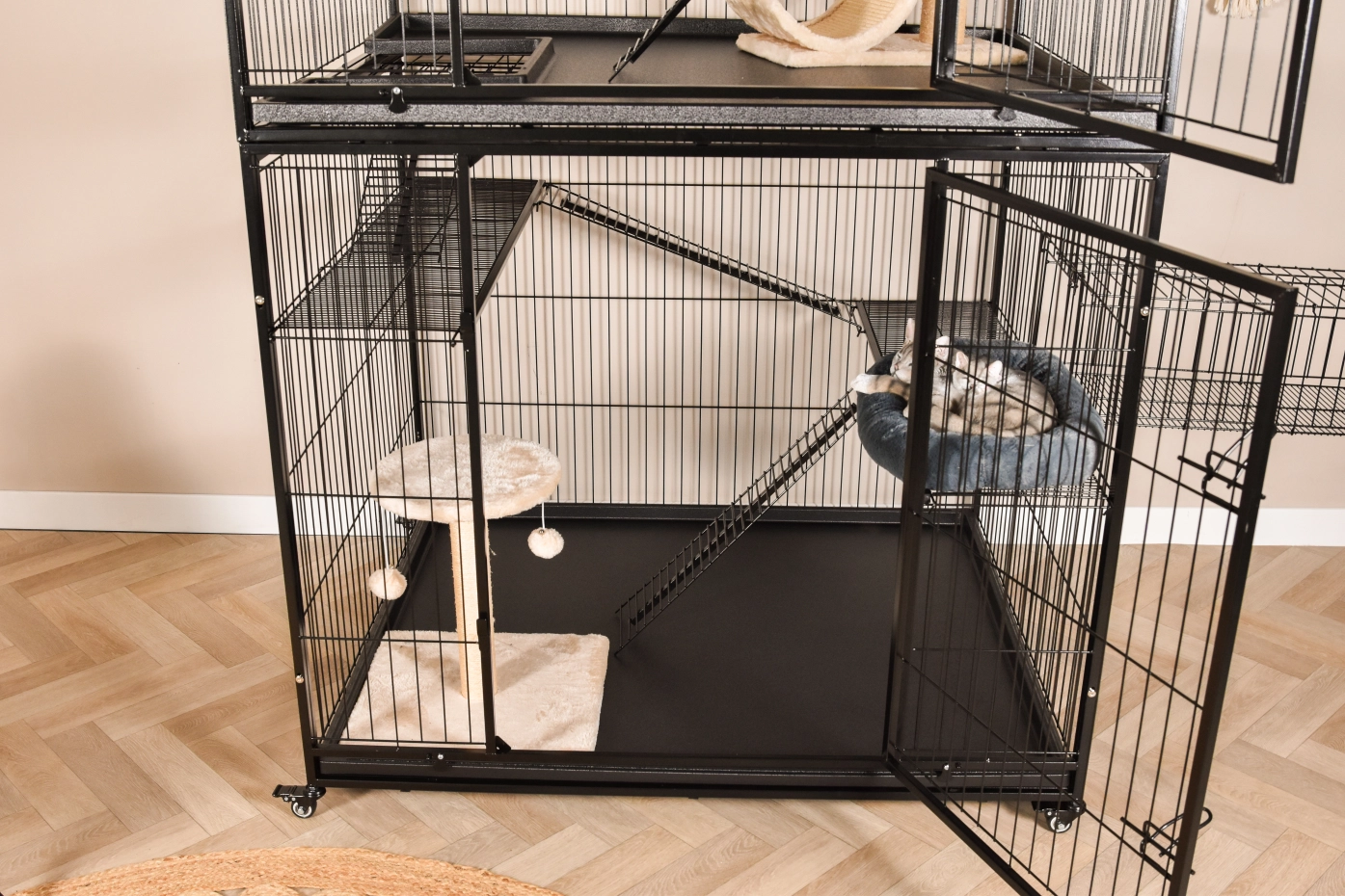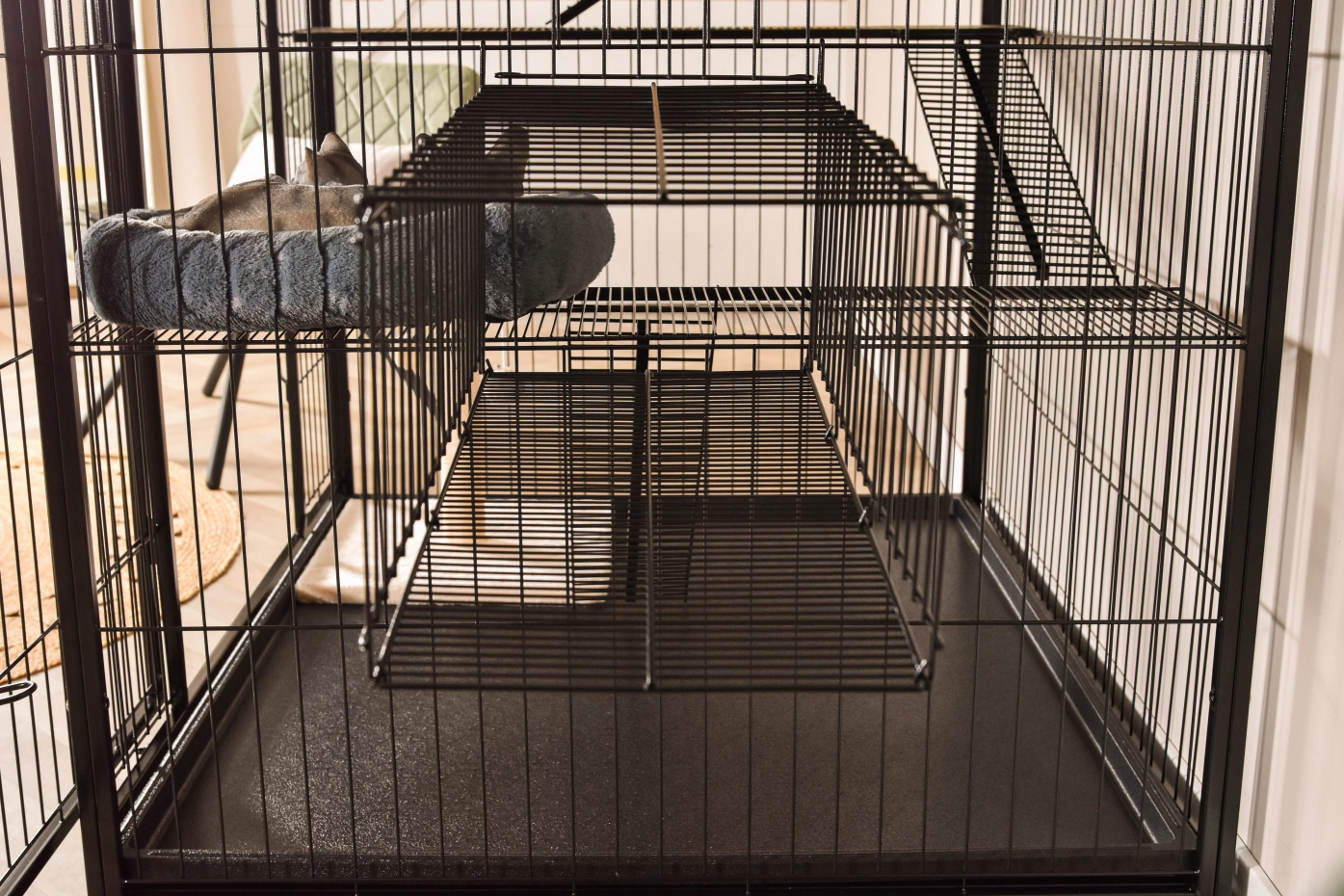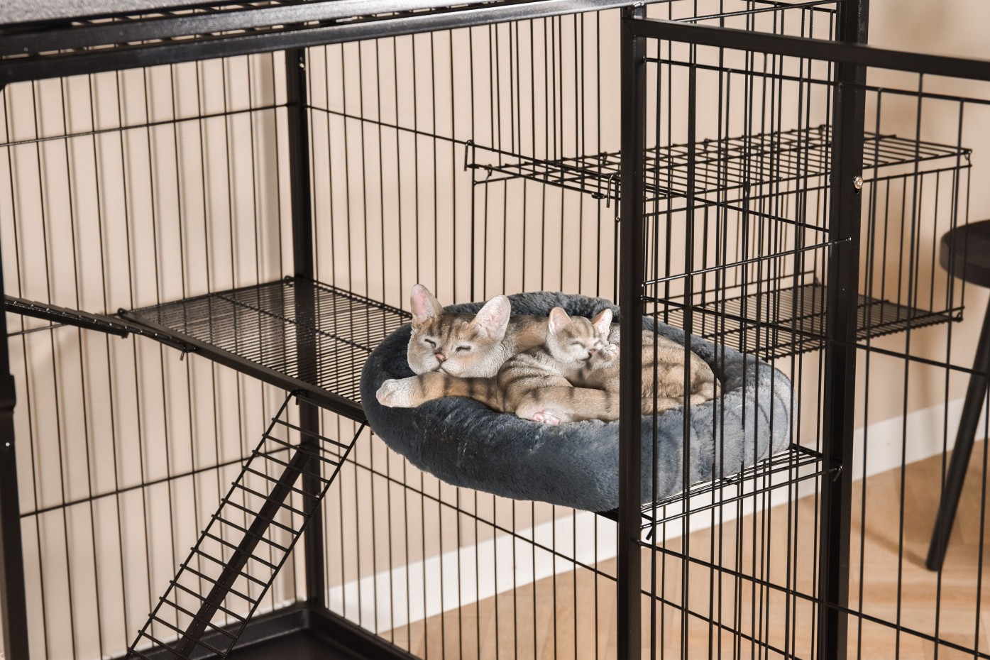 - Stabiler Katzenkäfig mit schwarzer Hammerschlag-Beschichtung der Gitterstäbe