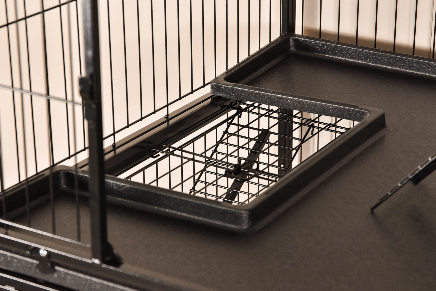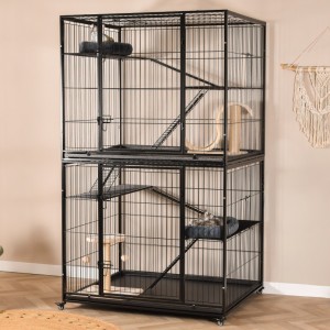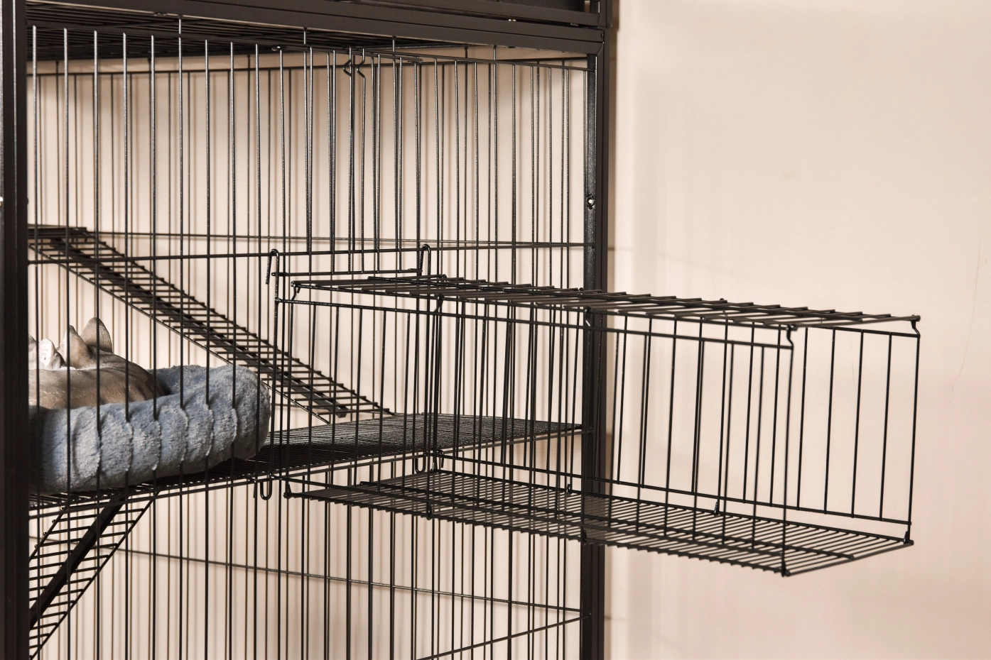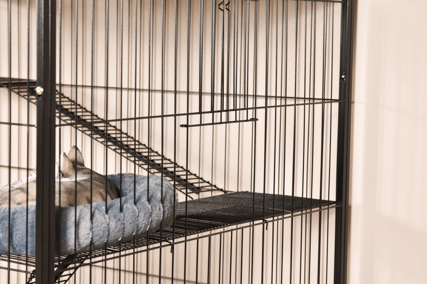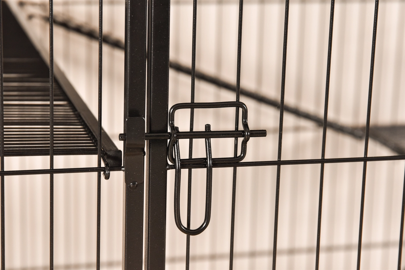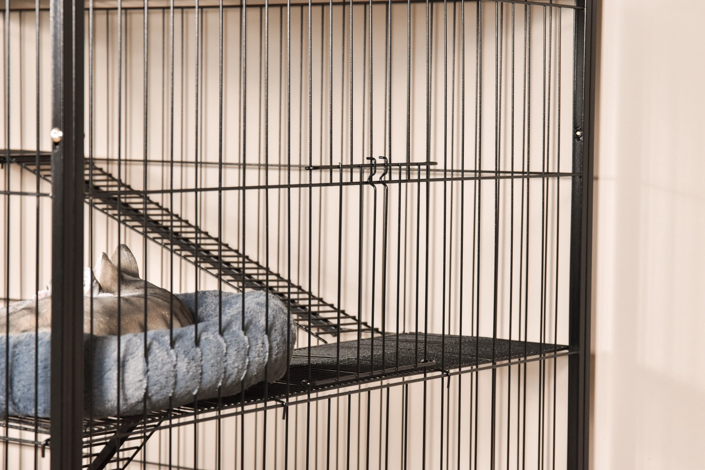 - Stabiler Katzenkäfig mit schwarzer Hammerschlag-Beschichtung der Gitterstäbe