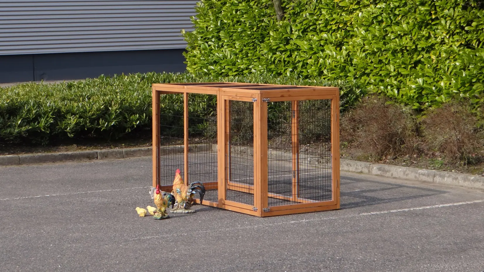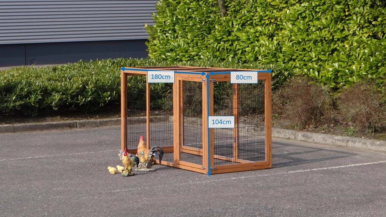 Der vielseitige Tierlaufstall Functional kann problemlos an Ihren bestehenden Kaninchen- oder Hühnerstall angeschlossen oder alleine aufgestellt werden, z. B. als Katzenlaufstall. Dieser multifunktionale Laufstall hat 4 Türen: eine an jeder Seite. Sie können diesen Stall auch problemlos mit mehreren Exemplaren kombinieren. Der Katzenlaufstall Functional ist einmal gebeizt. Beize für diesen Katzenlaufstall ist optional erhältlich. Der Stall ist mit einem Drahtdach ausgestattet.