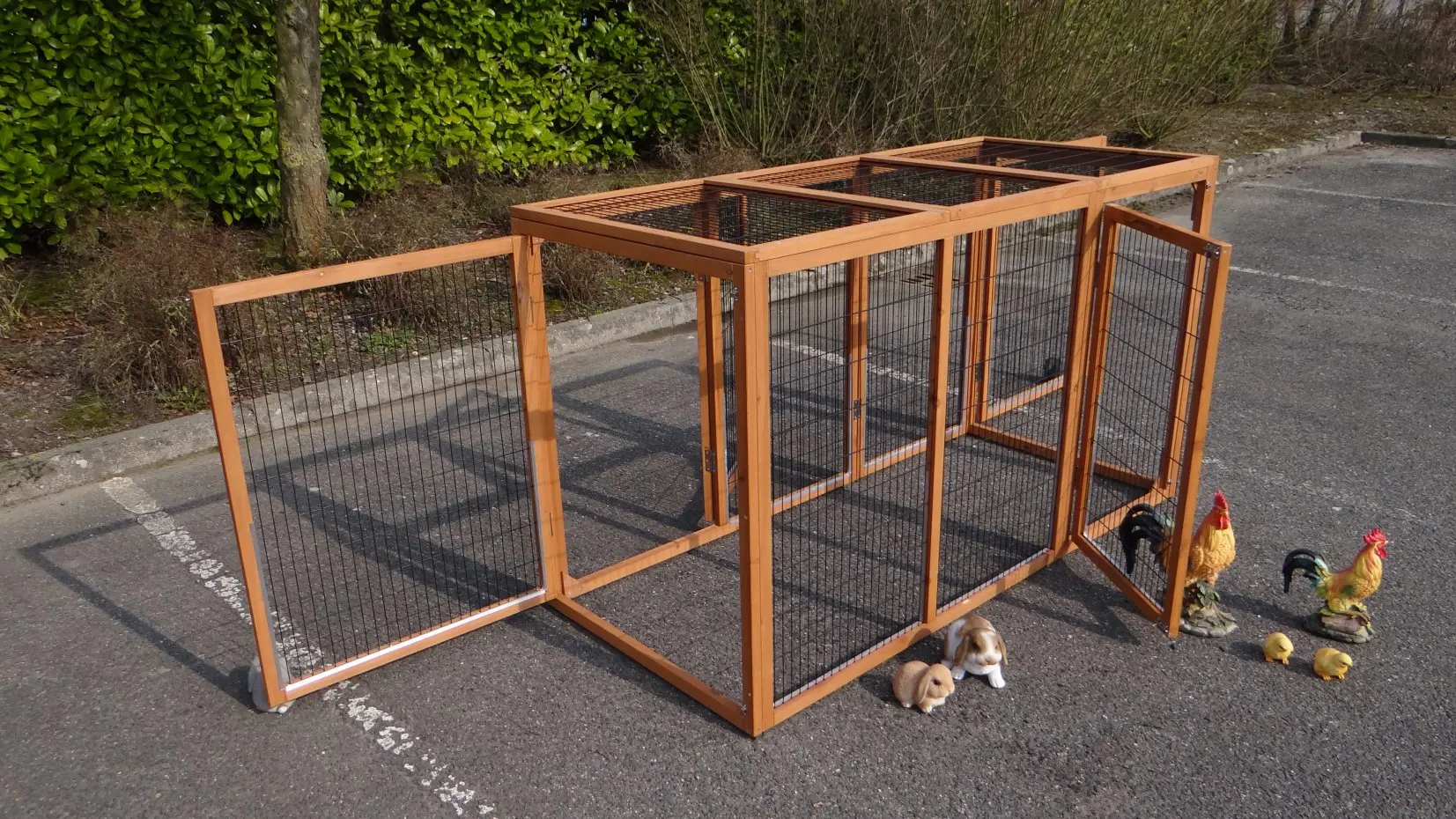- Die Paneele des Geheges werden teilweise montiert geliefert.