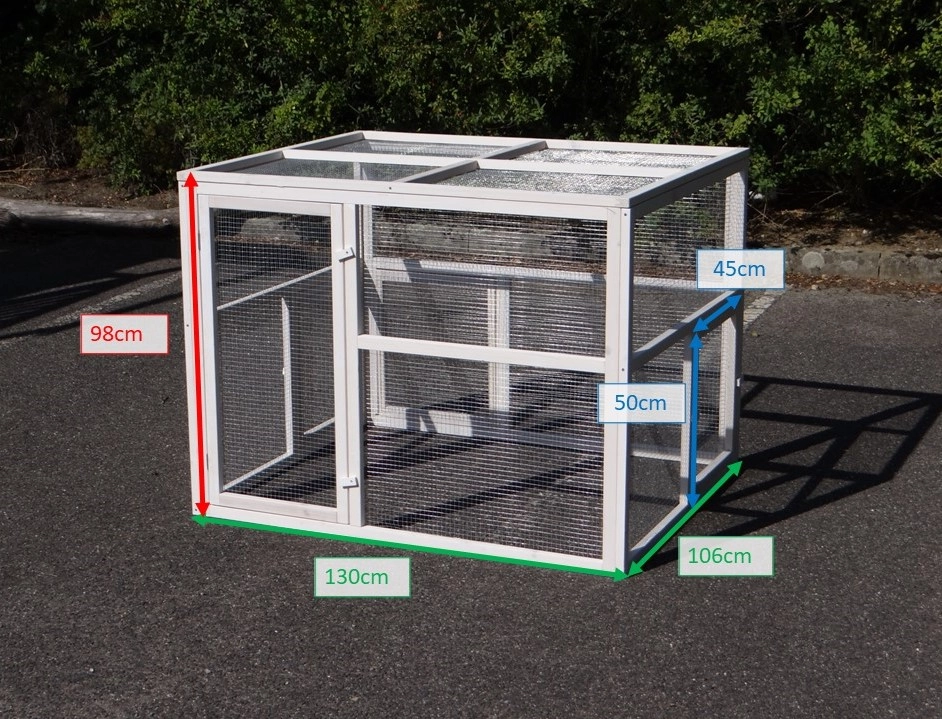 - Der Auslauf hat ein Dach aus Gitter (ca. 12x12mm)