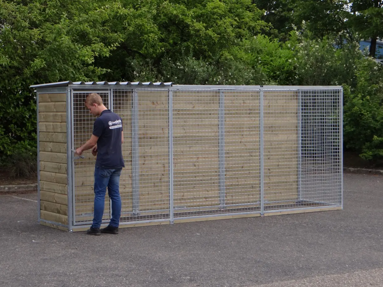 - Pro Zwingerpaneel werden 2 Bolzen, 2 Unterlegscheiben und 2 Muttern mitgeliefert