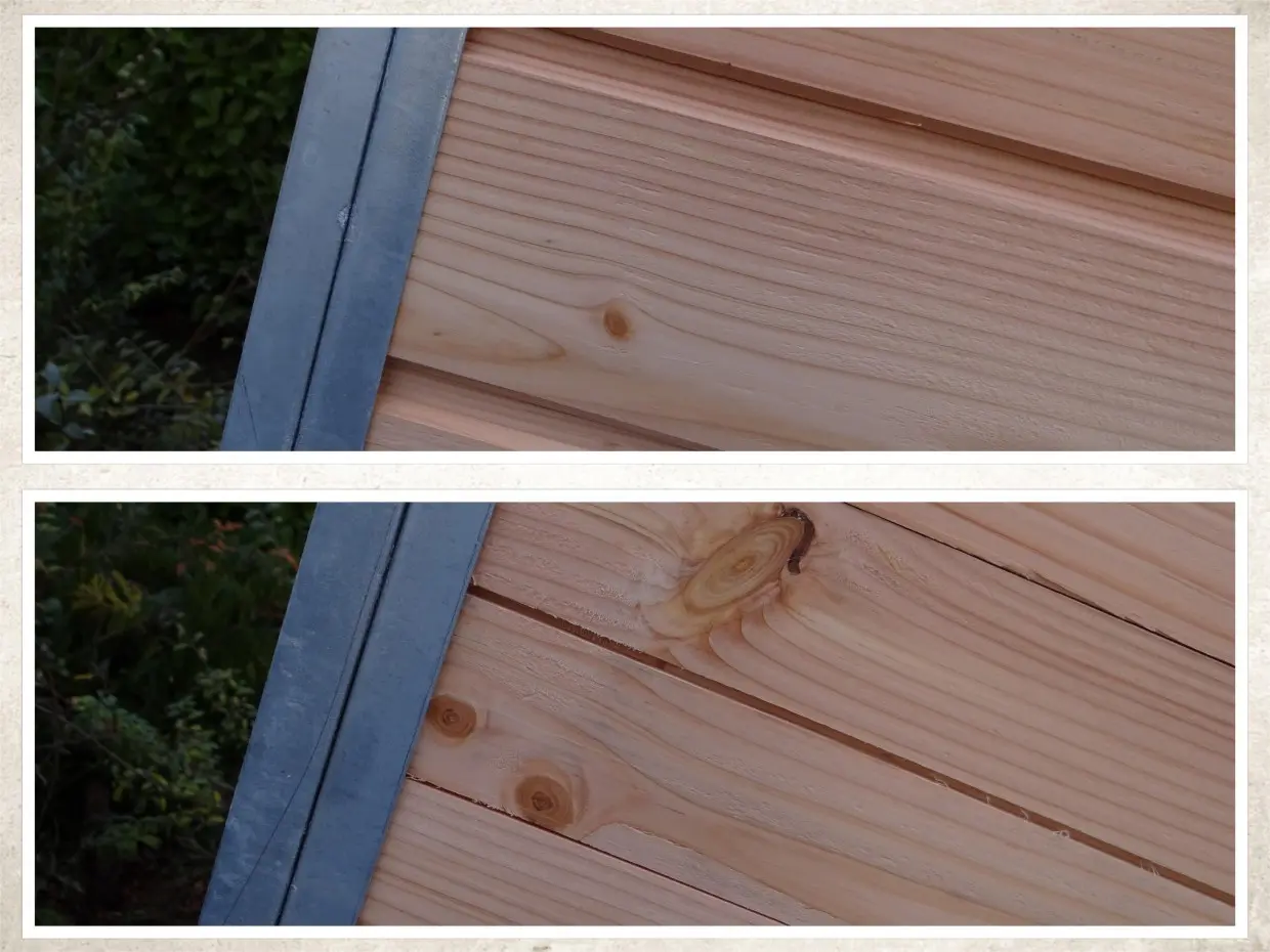 - Die Holzpaneele sind mit 18 mm dicken konservierten Nut- und Federbrettern ausgerüstet.
