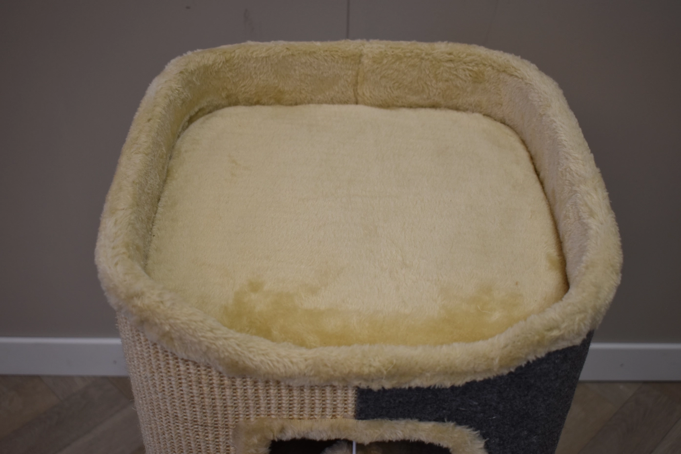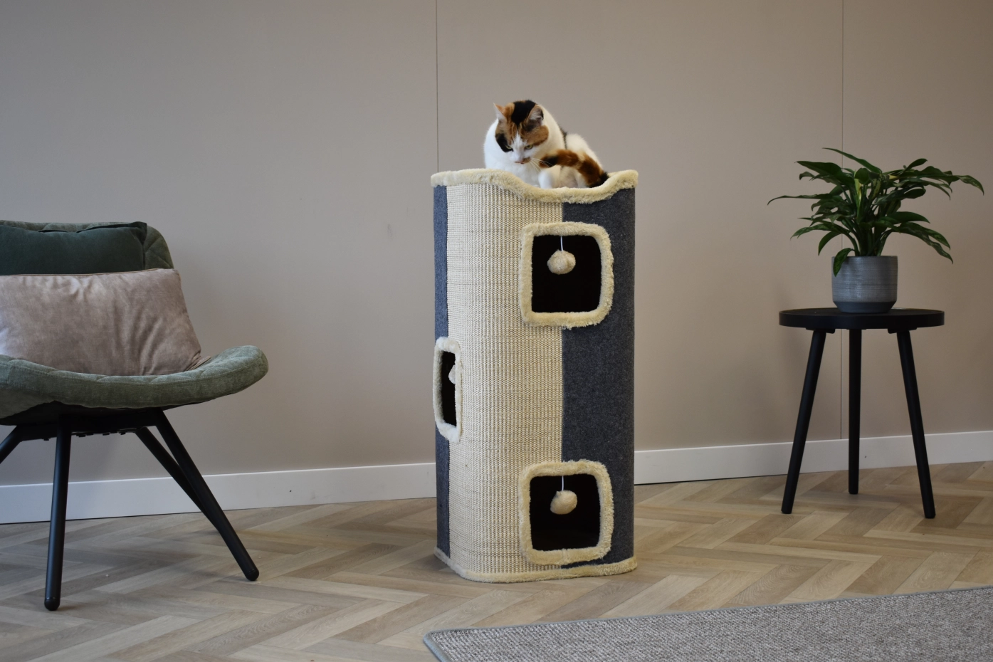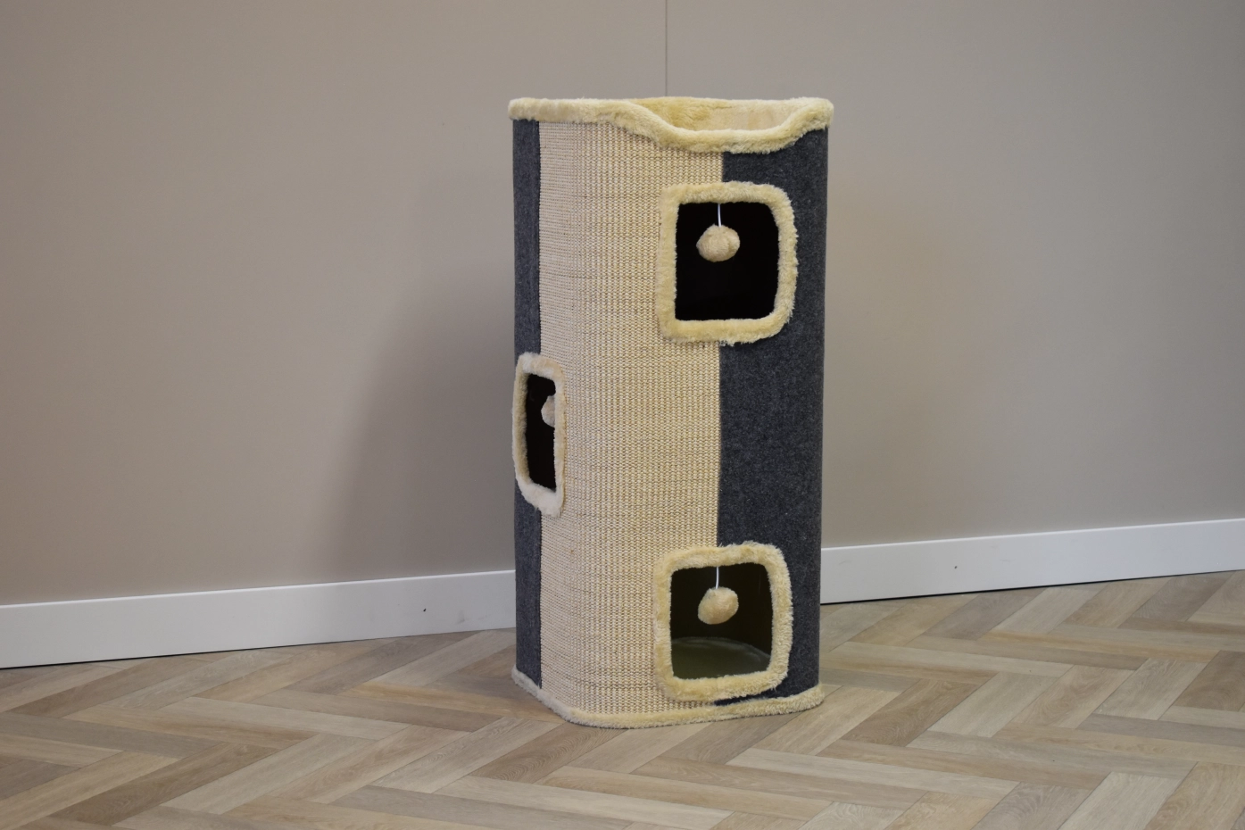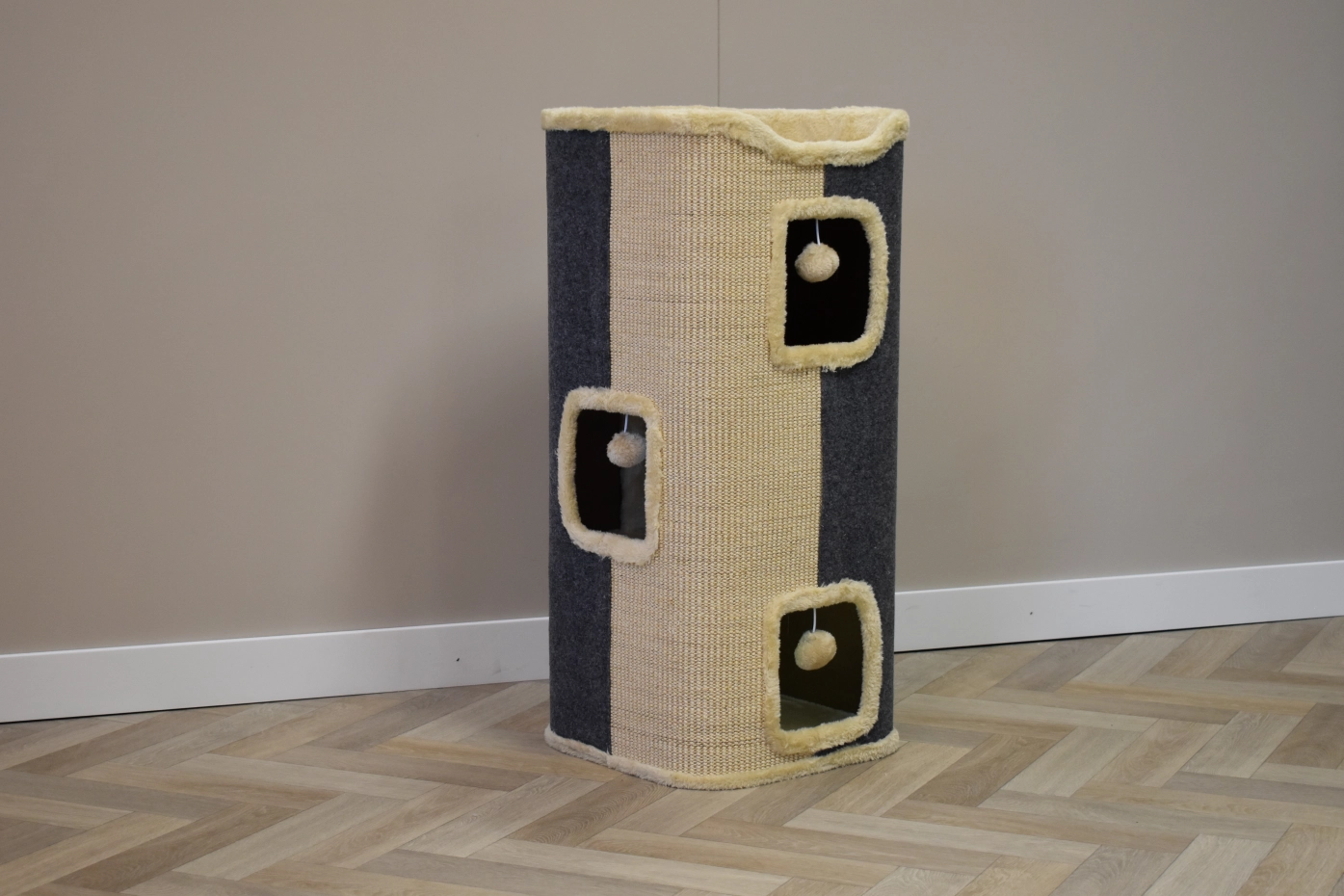 Der Kratztonne Kadee hat 3 kleine Haüschen mit auf der Spitze ein Liegeplattform. Der Tonne hat ein sisal-Teil, wodurch Ihre Katze viele Möglichkeiten zum Kratzen hat. Diese Kratztonne ist geeignet für kleine bis mittelgroße Katzen.