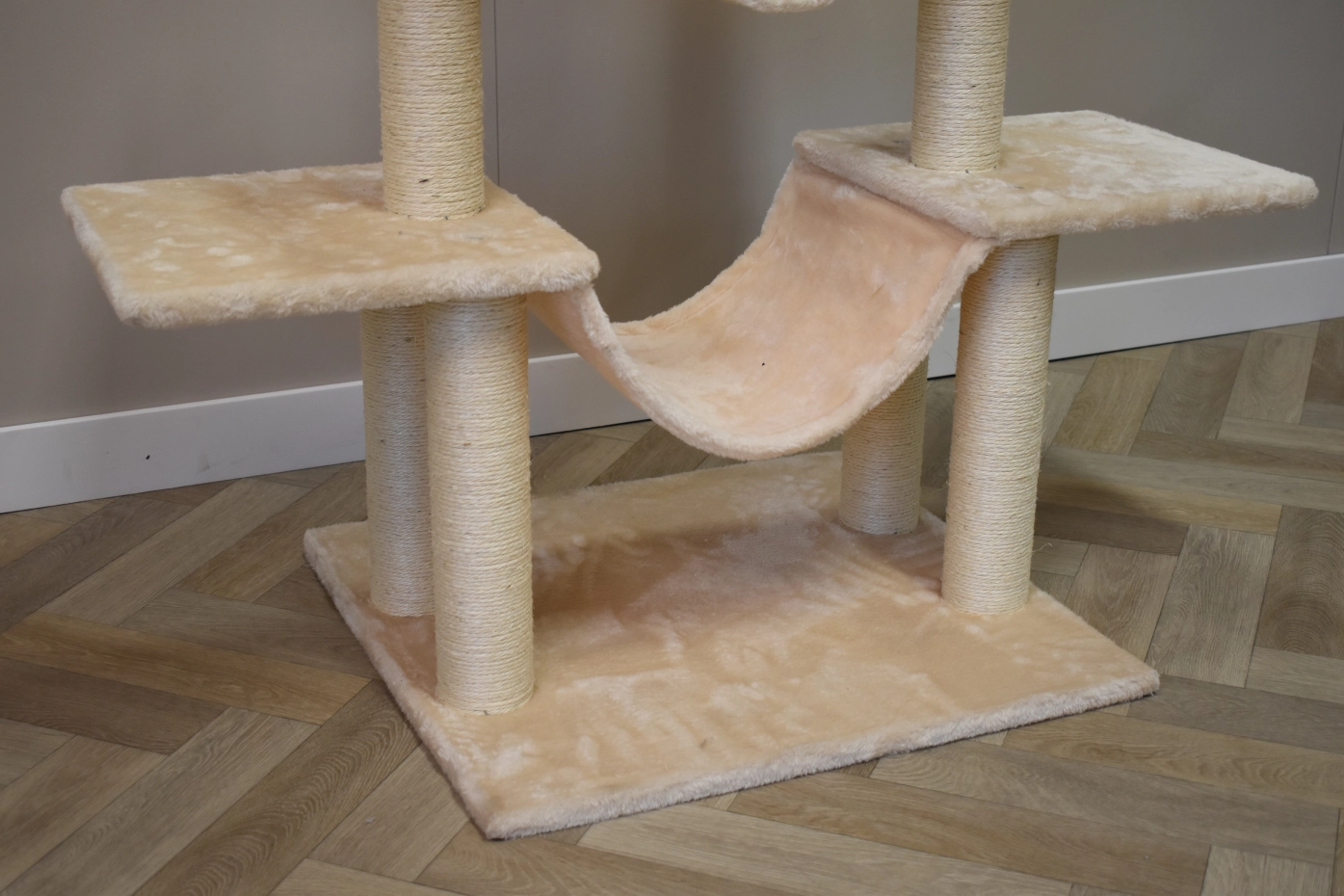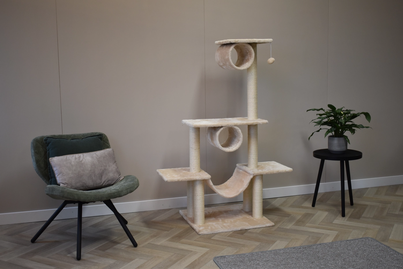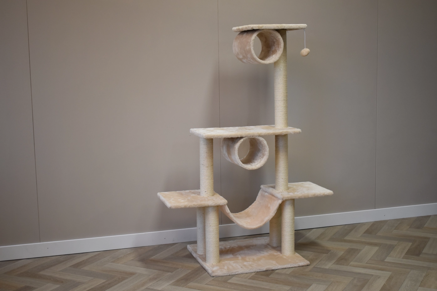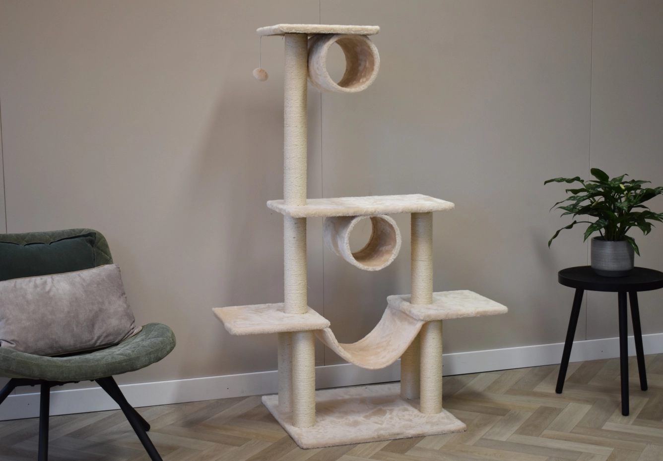 Der Kratzbaum Katinka sorgt für viel Spaß für Ihre Katze. Der Kratzbaum hat mehrere Liegeplattforme, sisal Kratzpfahlen, ein Hängematte und 2 Tunnel. Diese Katzenbaum ist geeignet für kleine bis mittelgroße Katzen.