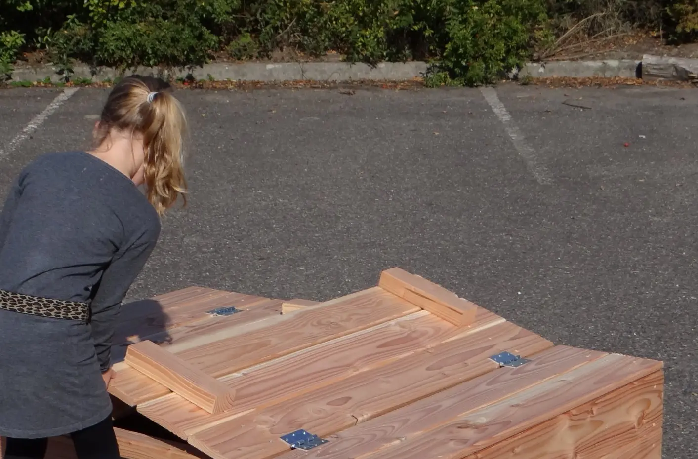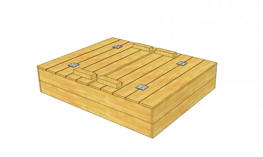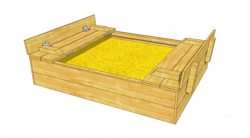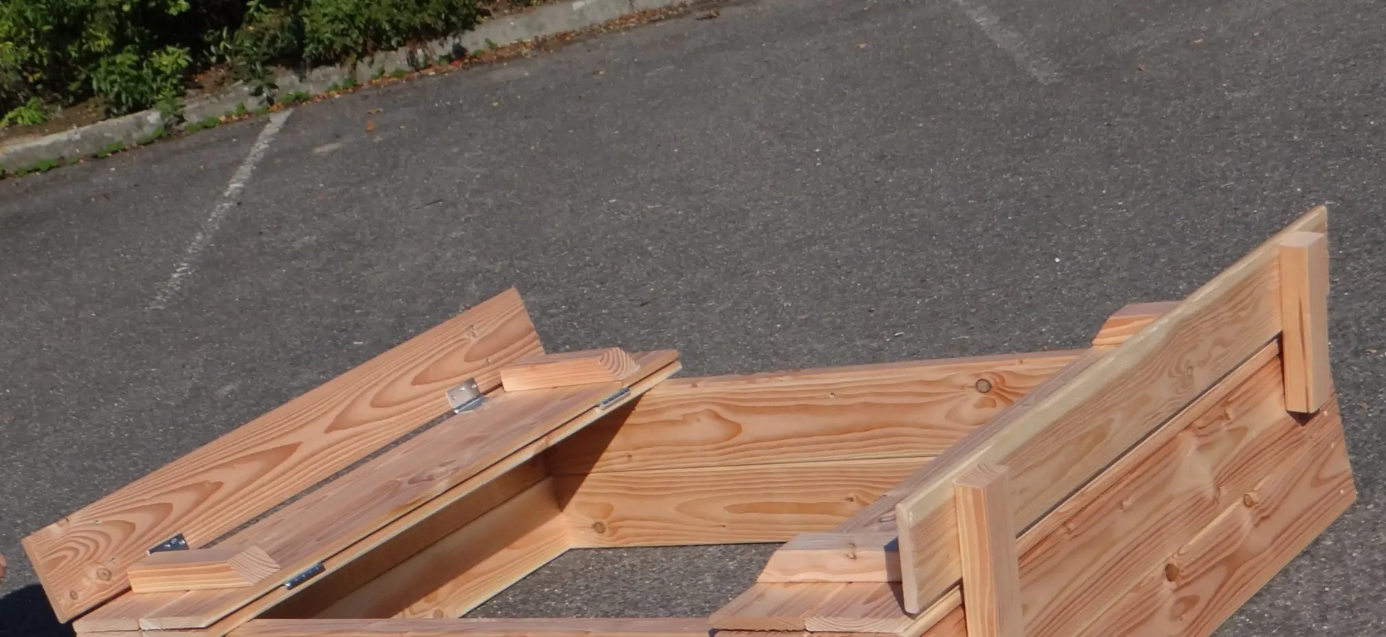- Der Deckel des Sandkastens kann leicht hochgeklappt werden, so dass 2 Bänke entstehen