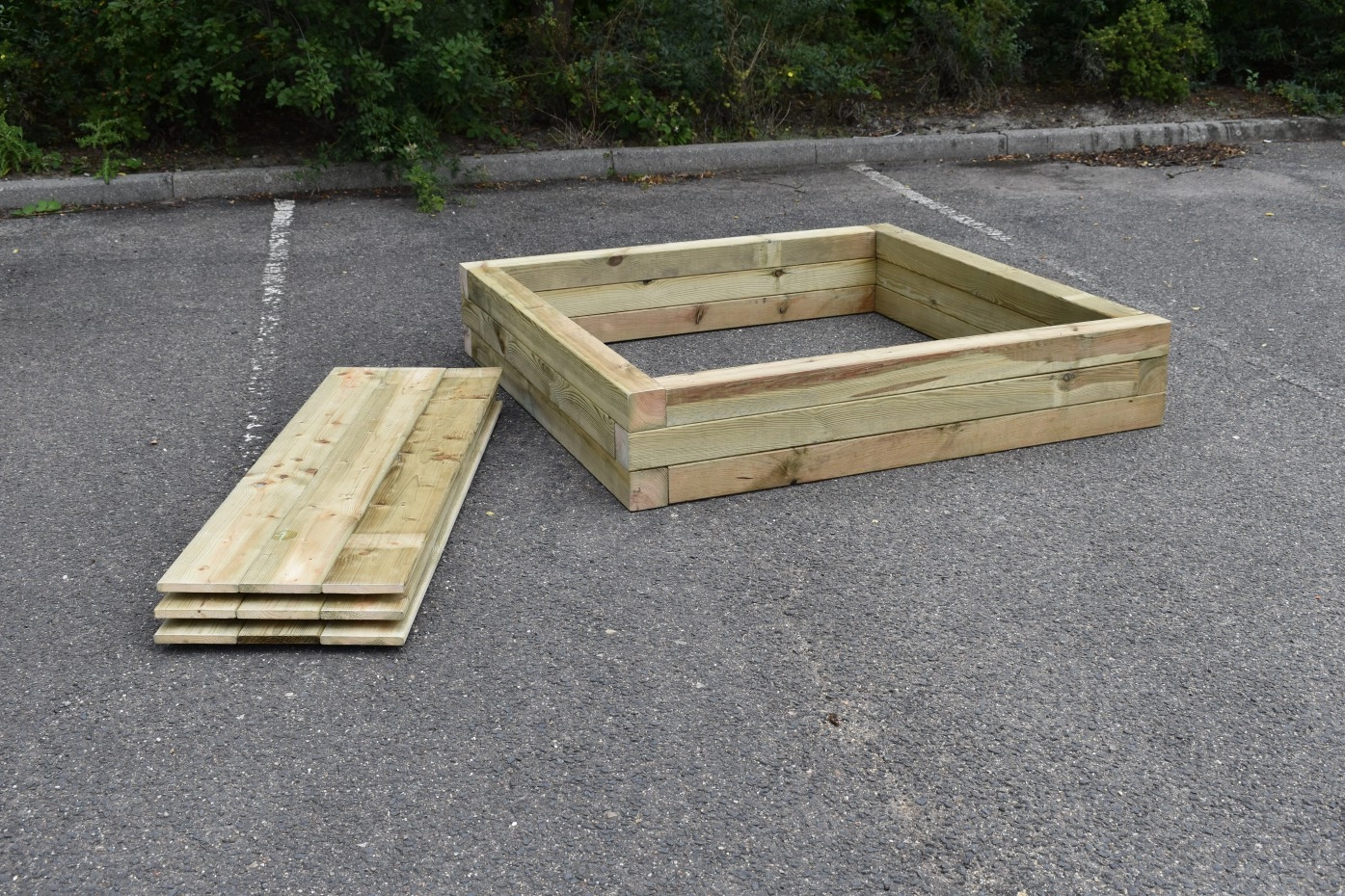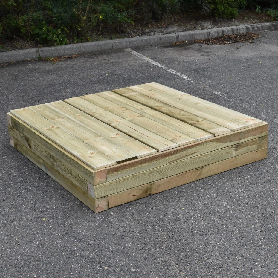 Der Sandkasten mit Deckel Solution ist ein stabiler, hölzerner Sandkasten mit abnehmbarem Deckel. Der Sandkasten besteht aus dicken Holzbalken, die druckimprägniert sind. Dadurch können Sie jahrelang Freude an diesem Sandkasten haben. Der Sandkasten wird mit einem Holzdeckel geliefert. Der Sandkastendeckel besteht aus 3 Teilen, die lose auf dem Sandkasten liegen.