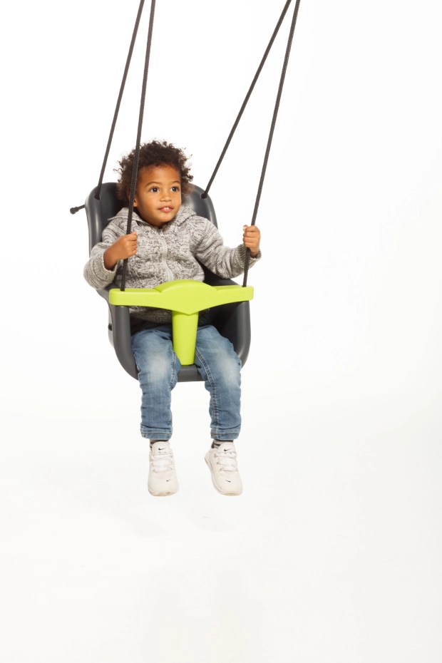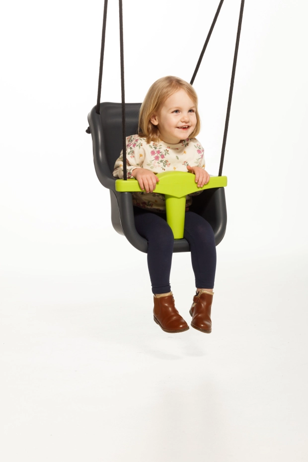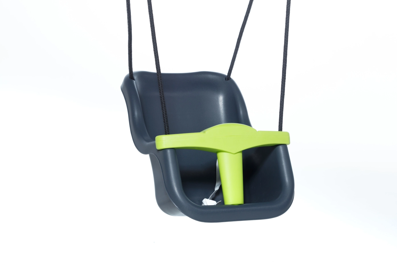 Babysitz 'Luxus' in Anthrazit/Limettengrün. Ein echter Hingucker! Dieser Babyschaukelsitz hat eine extra hohe Rückenlehne, die optimalen Halt für Kopf und Nacken bietet. Babysitz mit T-Stück und Sicherheitsgurt. Das spezielle BR-Seil dieses Babyschaukelsitzes brennt nicht an Kinderfingern.