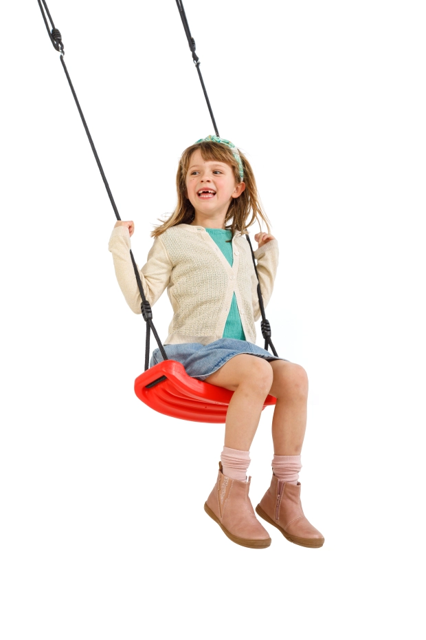 Kunststoff-Schaukelsitz in Feuerwehrrot! Der Sitz ist mit einem schwarzen BR-Schaukelseil ausgestattet, das in der Länge verstellbar ist. Die Aufhängeringe und Stellachten bestehen aus verzinktem Stahl. Geeignet für Schaukelgestelle mit einer Höhe von ca. 190 bis 240 cm.