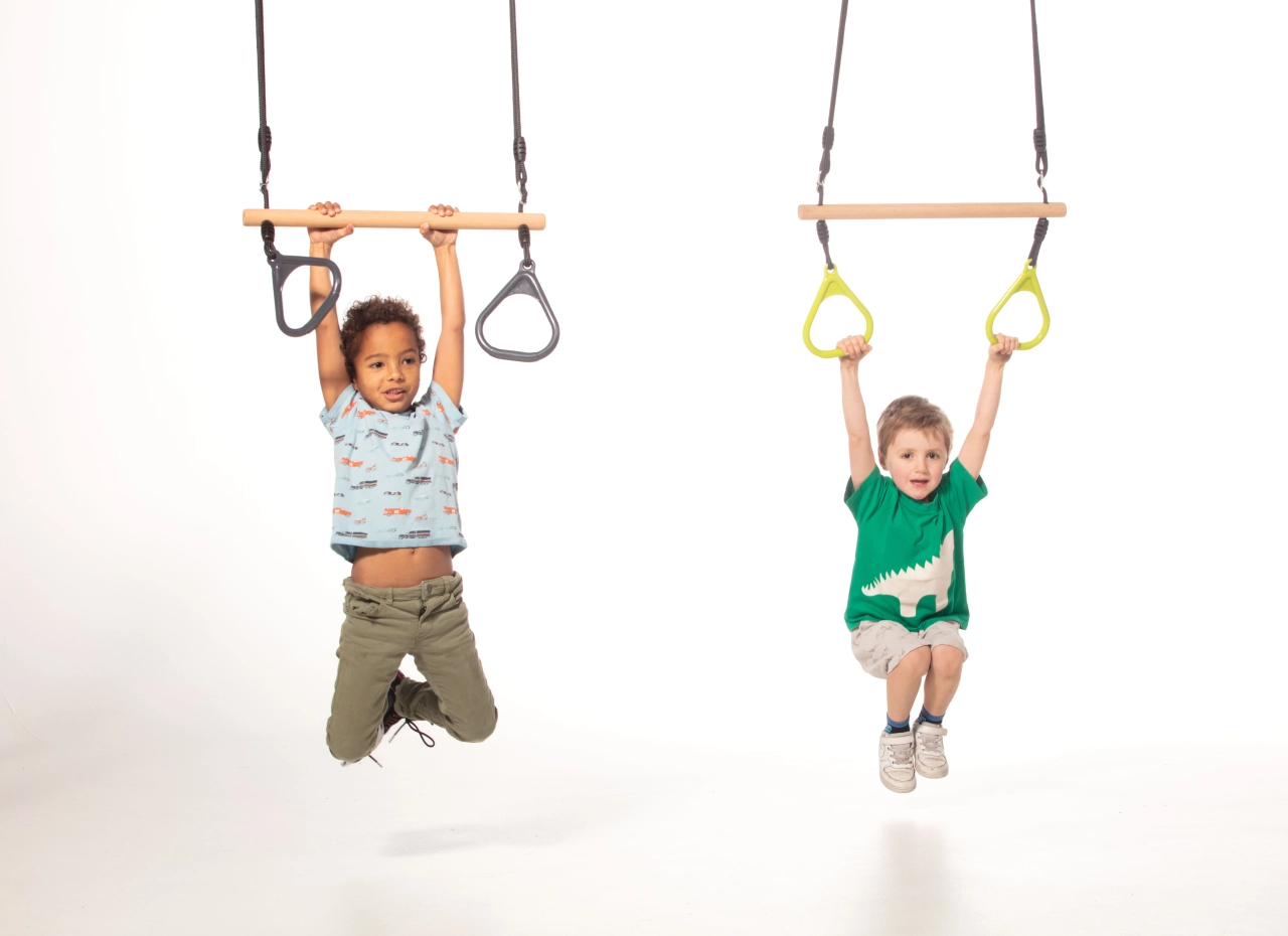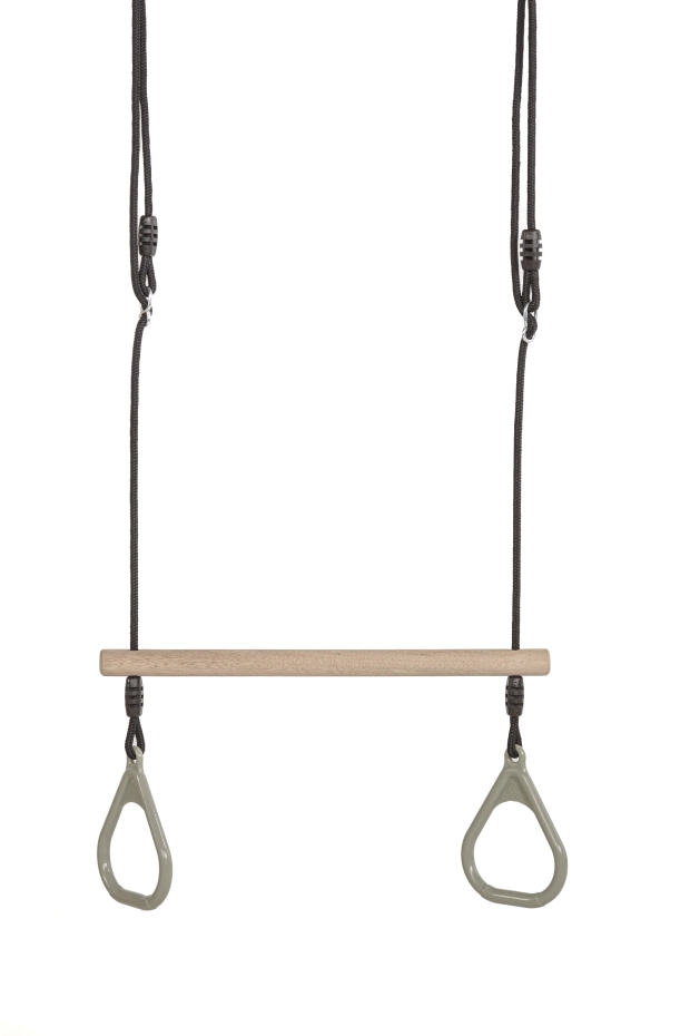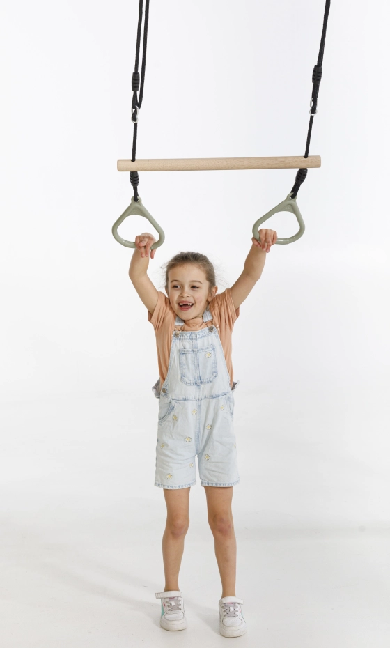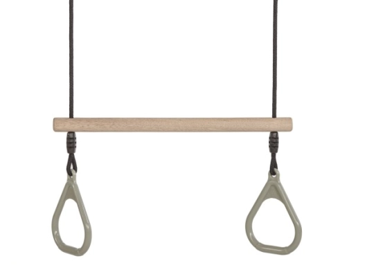 Das Holzringtrapez ist mit Kunststoffringen in der Farbe Pastellgrün ausgestattet. Machen Sie verschiedene Kunststücke an den Ringen und dem Trapez. Das Ringtrapez garantiert viel Spielspaß!