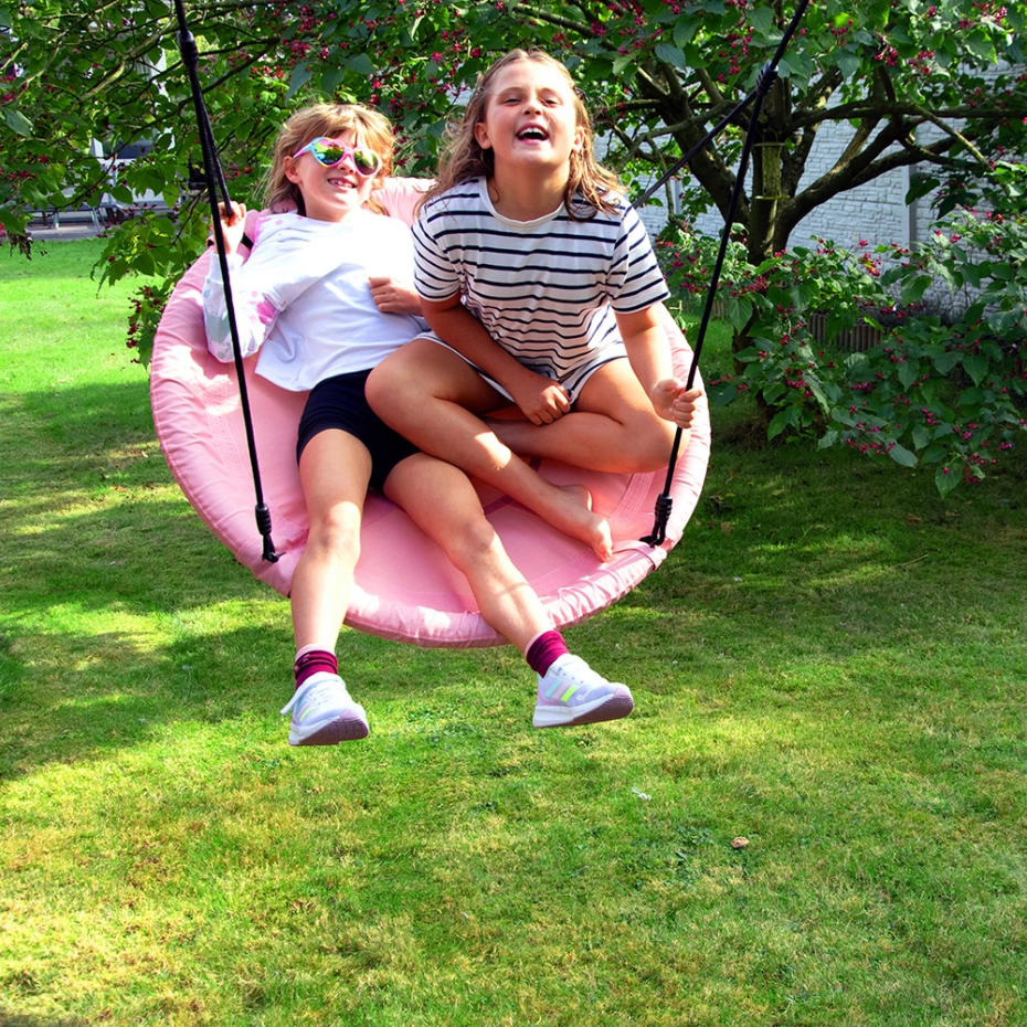 Die Rondice Nestschaukel in Pastellrosa ist eine stilvolle und bequeme Schaukelnest, die für stundenlangen Spielspaß sorgt. Diese Nestschaukel besteht aus wasserabweisendem Stoff und ist mit robust geflochtenen Seilen sowie langlebigen BR-Kunststoffverbindungen in passender Farbe ausgestattet. Durch das stabile Design können mehrere Kinder gleichzeitig sicher und bequem schaukeln.