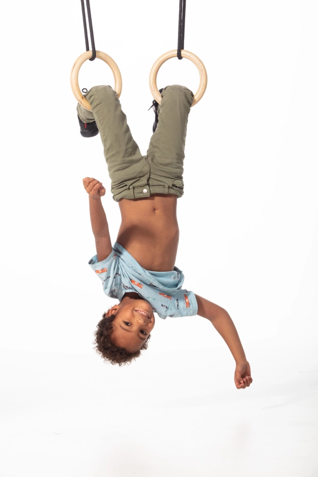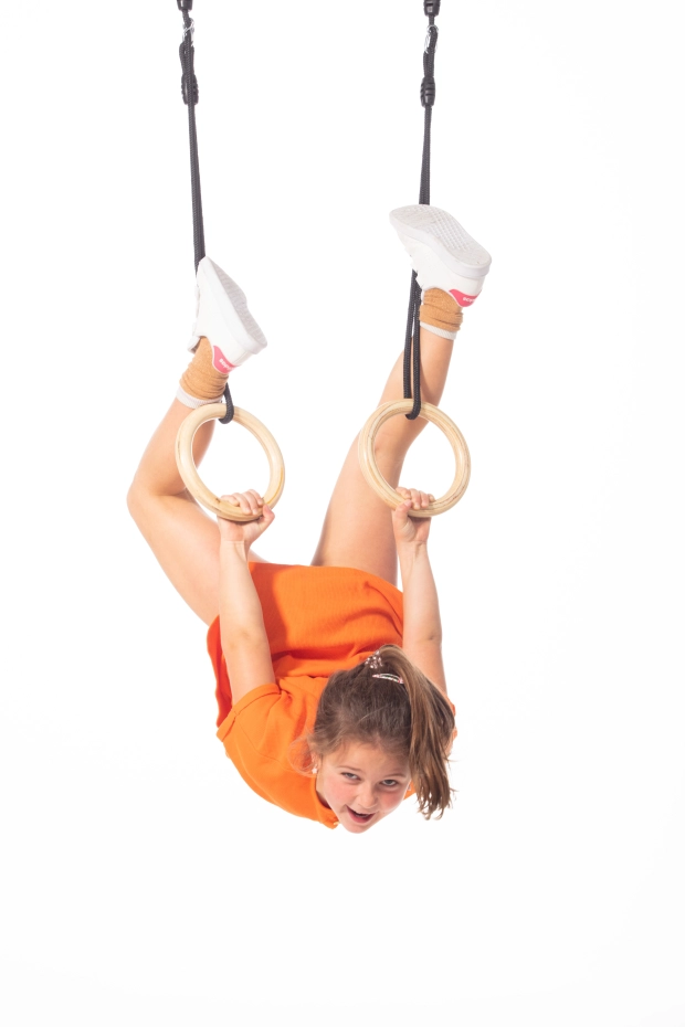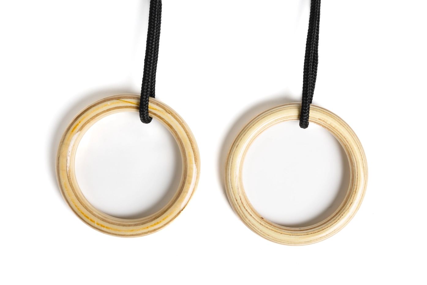 Holz-Turnringe mit schwarzem BR-Seil. Lebe deine akrobatischen Künste voll aus mit diesen Turnringen!