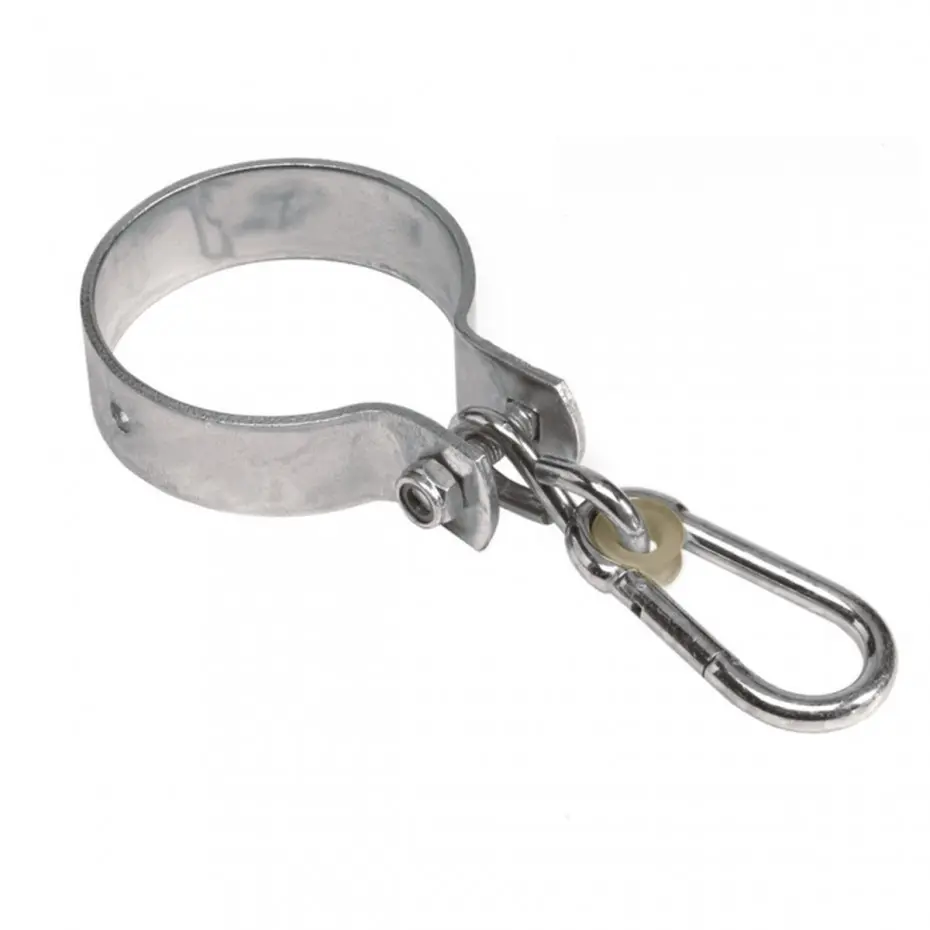 Schaukelhaken mit Karabiner, geeignet für Rundholz-Schaukelpfosten Ø12cm. Einfache Montage um einen runden, hölzernen Schaukelbalken. Dank des praktischen Karabiners können Schaukelsitze an diesem Schaukelhaken schnell ausgetauscht werden.