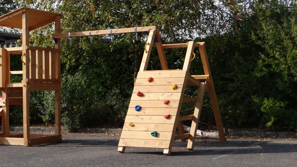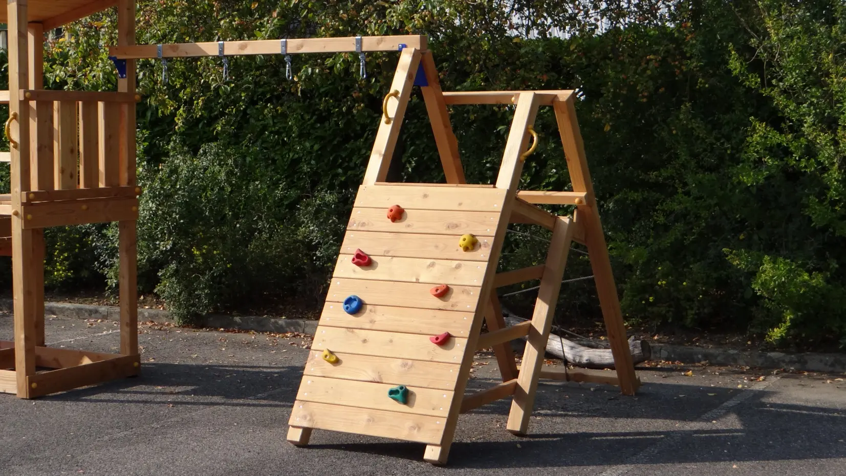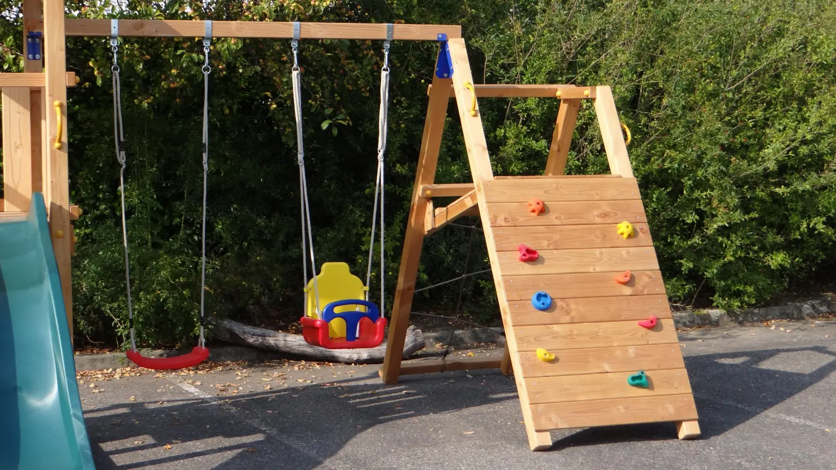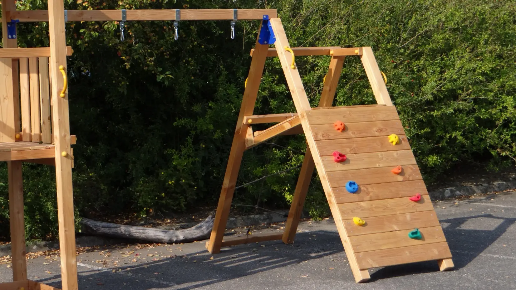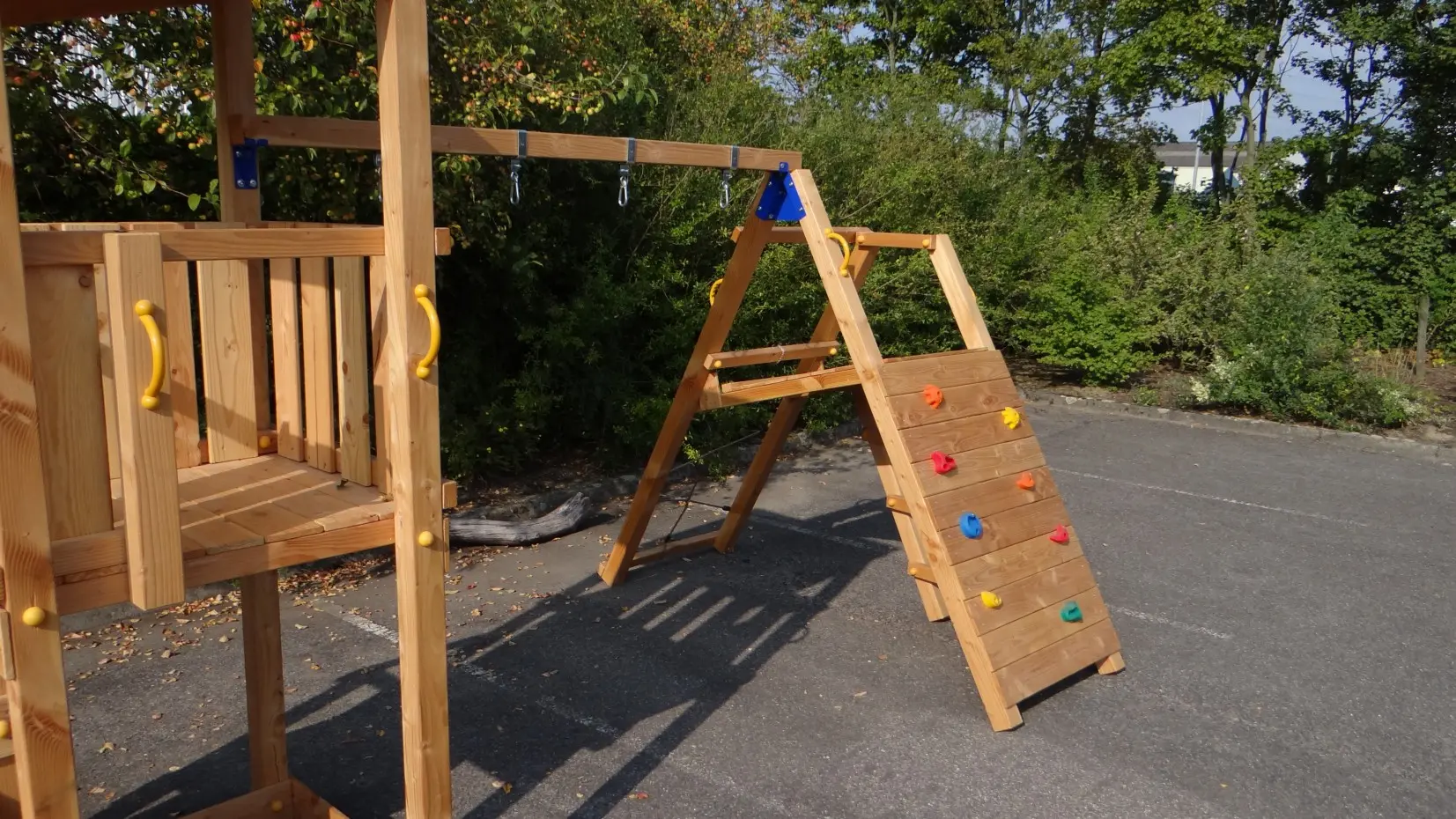 Anbauelement @Challenger niedrig Douglas ist eine schöne Erweiterung mit vielen Kletter-, Kraxel- und Schaukelmöglichkeiten. Eine große Bereicherung für Ihr Spielgerät oder als eigenständiges Gerät direkt an der Wand! Der @Challenger ist komplett ausgestattet mit Schaukel, Kletterwand mit Klettersteinen, einem Kletternetz und einer kleinen Treppe!
